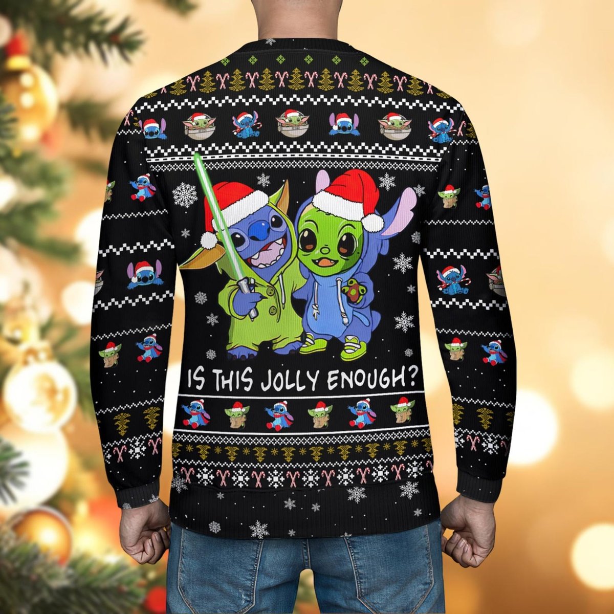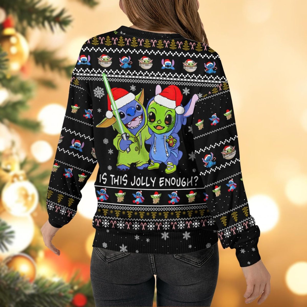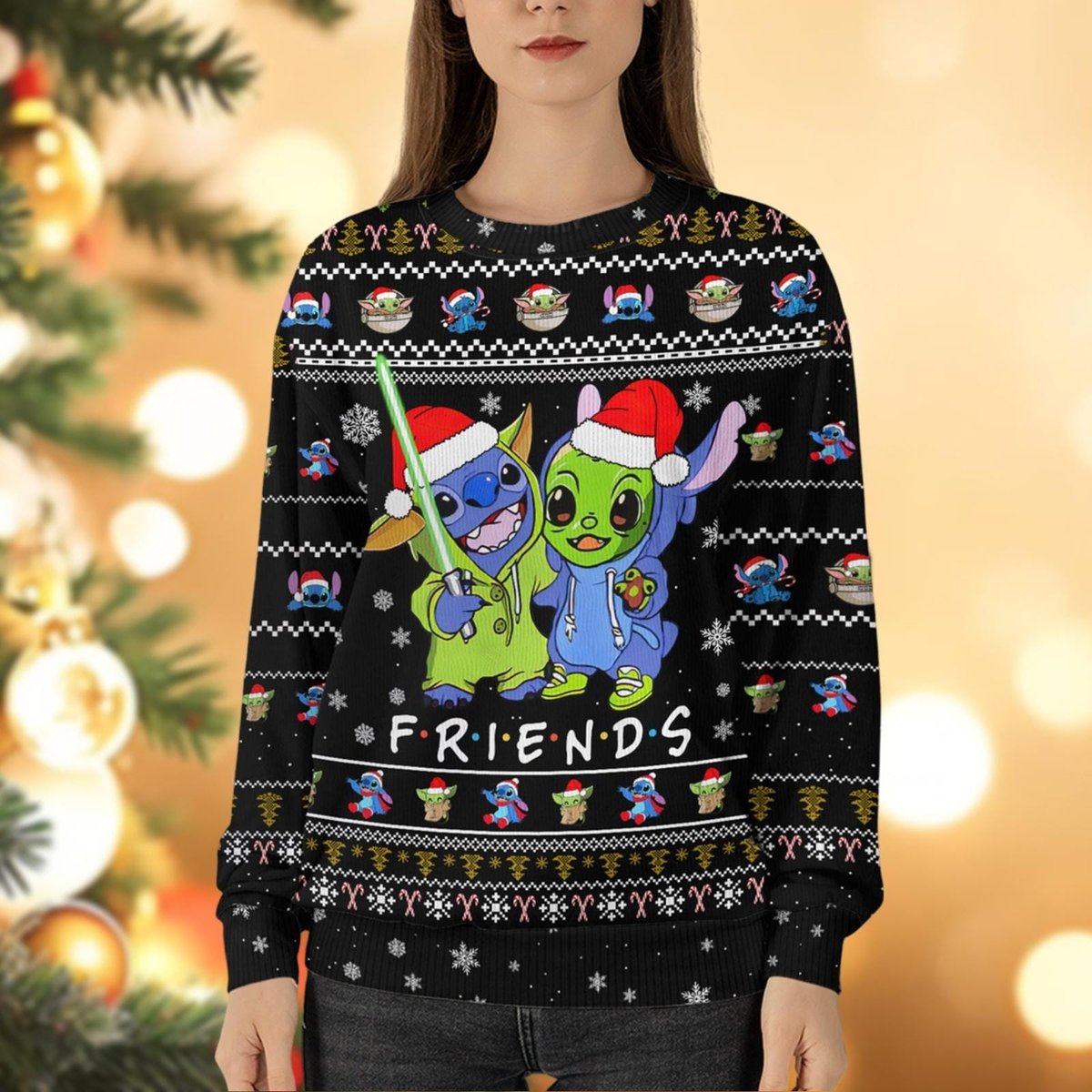 Stitch And Baby Yoda Friends Black Ugly Christmas Sweater Funny Holiday Knit Gift