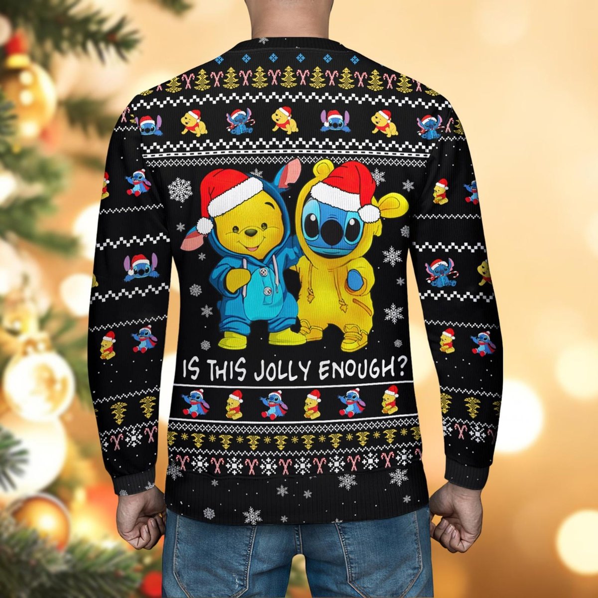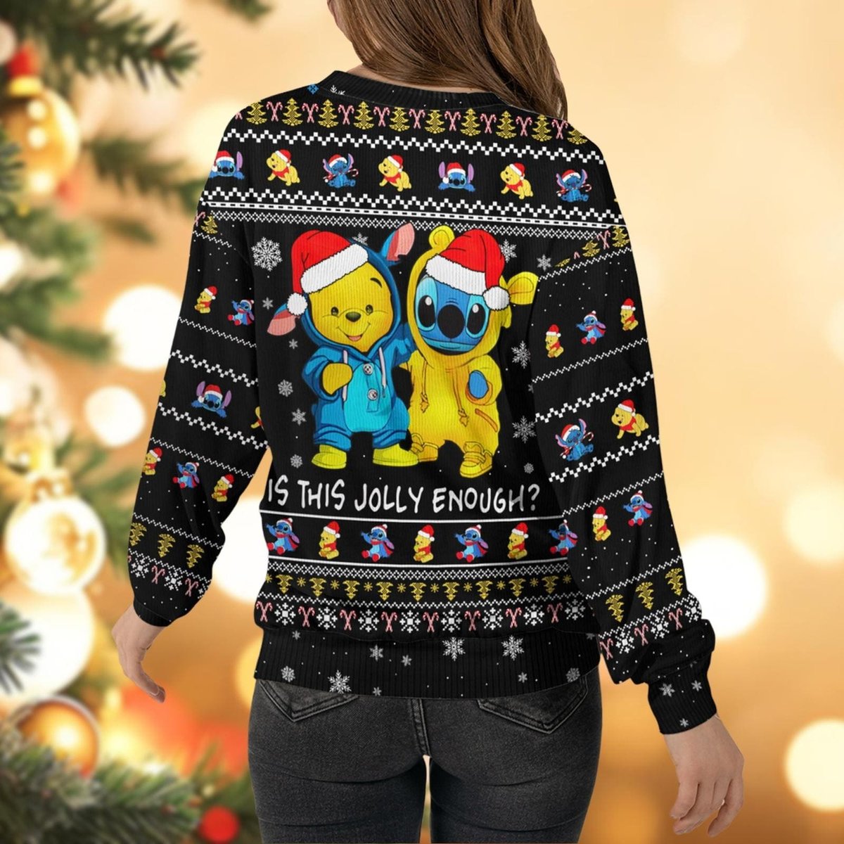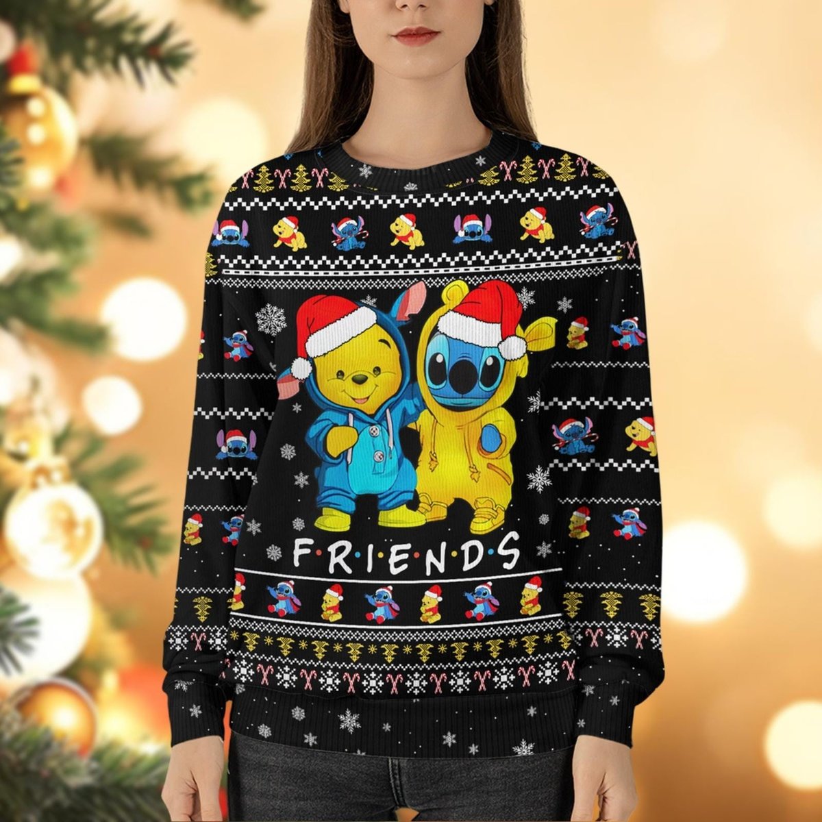Stitch And Pooh Friends Black Ugly Christmas Sweater Funny Holiday Knit Gift