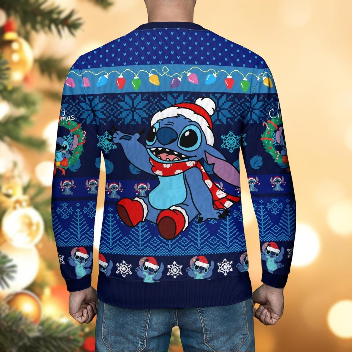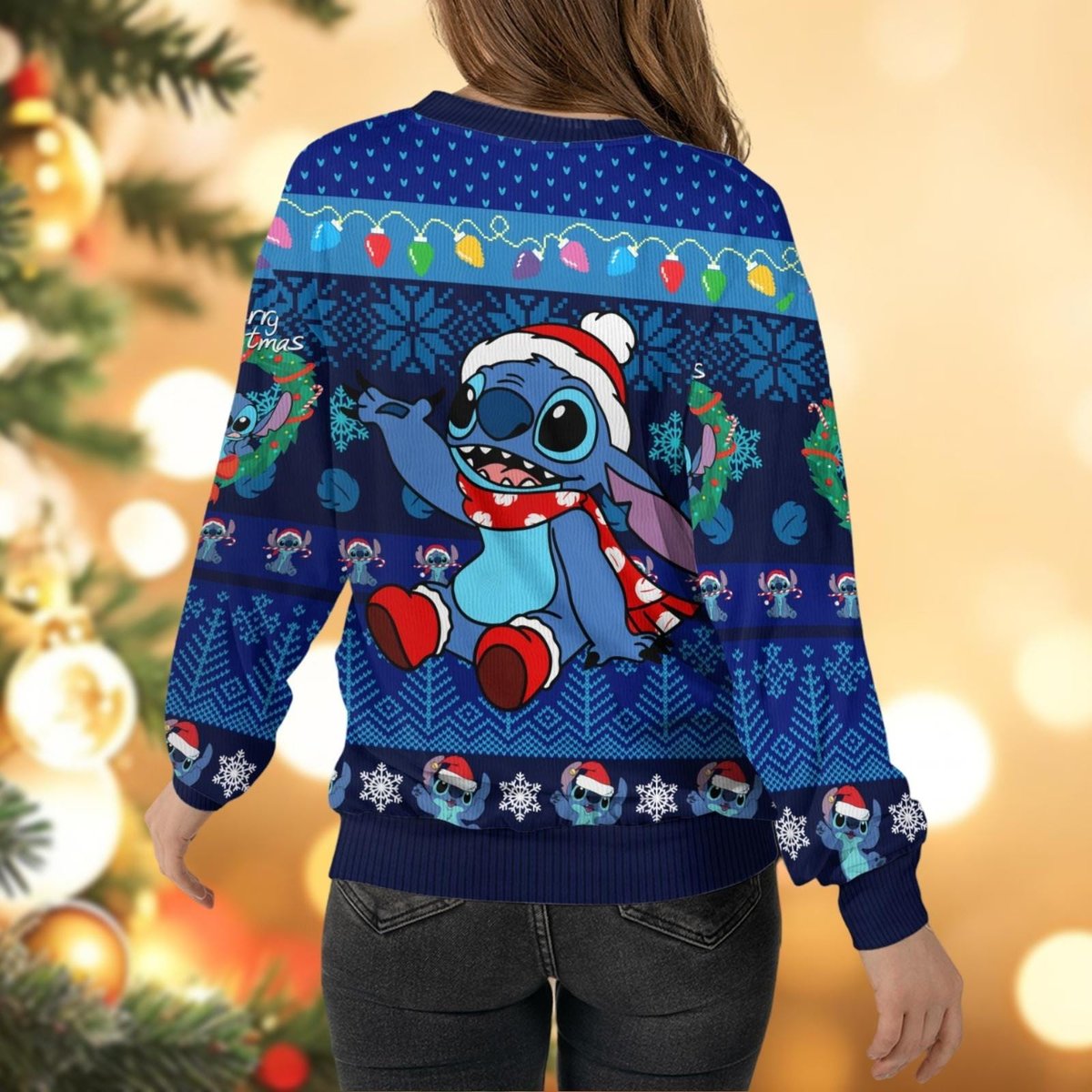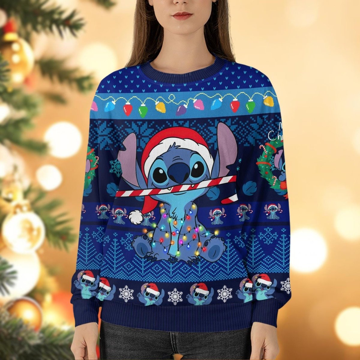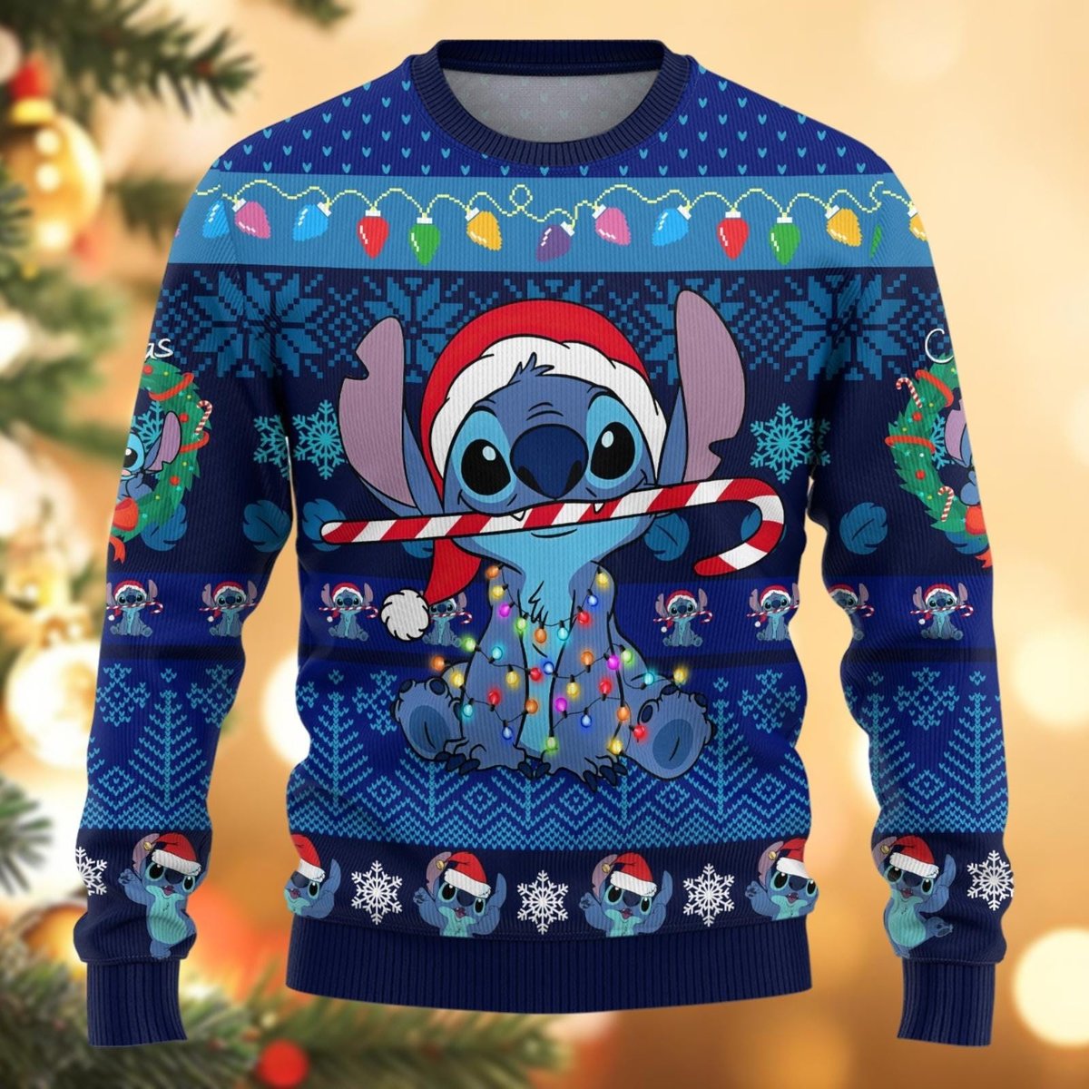 Stitch Candy Cane Lights Blue Ugly Christmas Sweater Funny Holiday Knit Gift