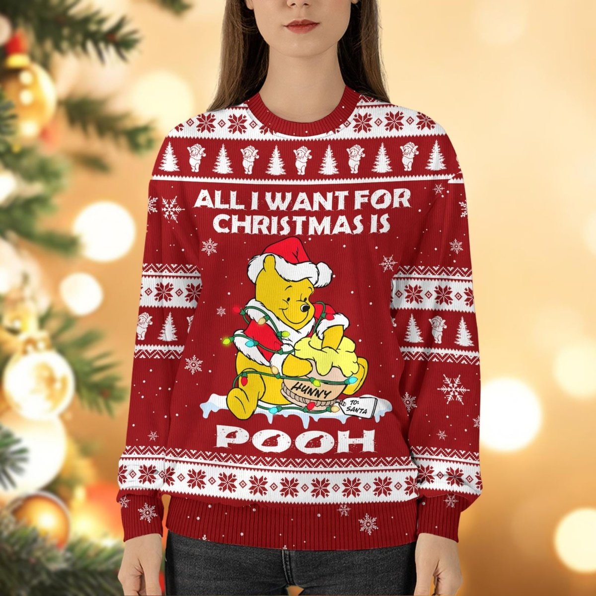 Winnie The Pooh All I Want For Christmas Ugly Christmas Sweater Cute Gift