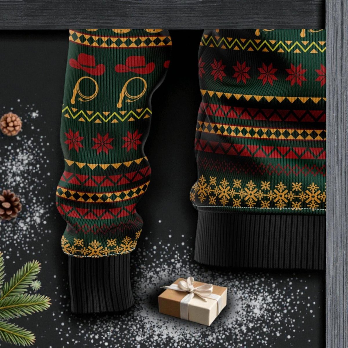 Gorgeous Cowboy Green Ugly Christmas Sweater Rodeo Horse Riding Holiday Knit Jumper