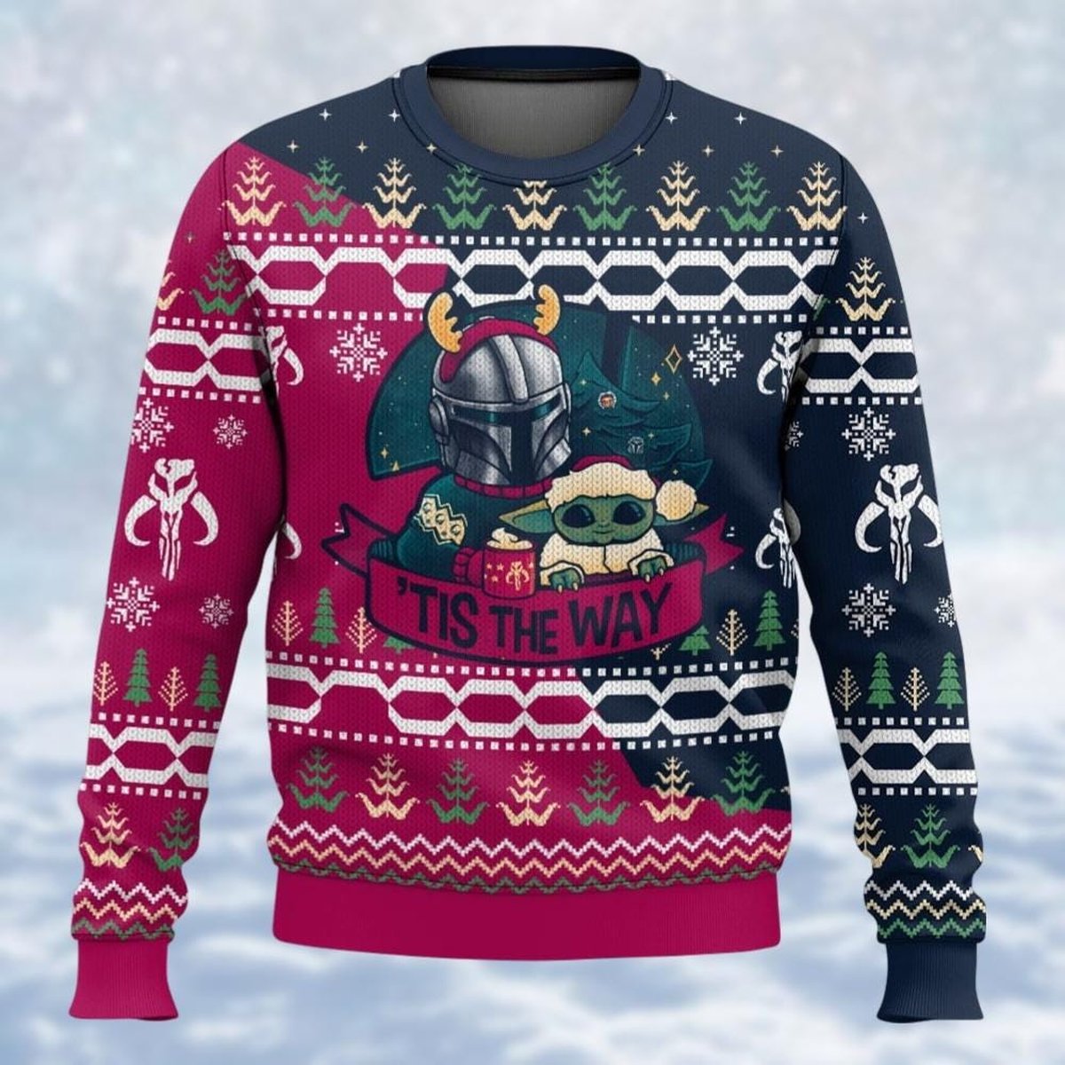 Mandalorian And Grogu Christmas Ugly Sweater Red Navy Star Wars Funny Holiday Knit Jumper