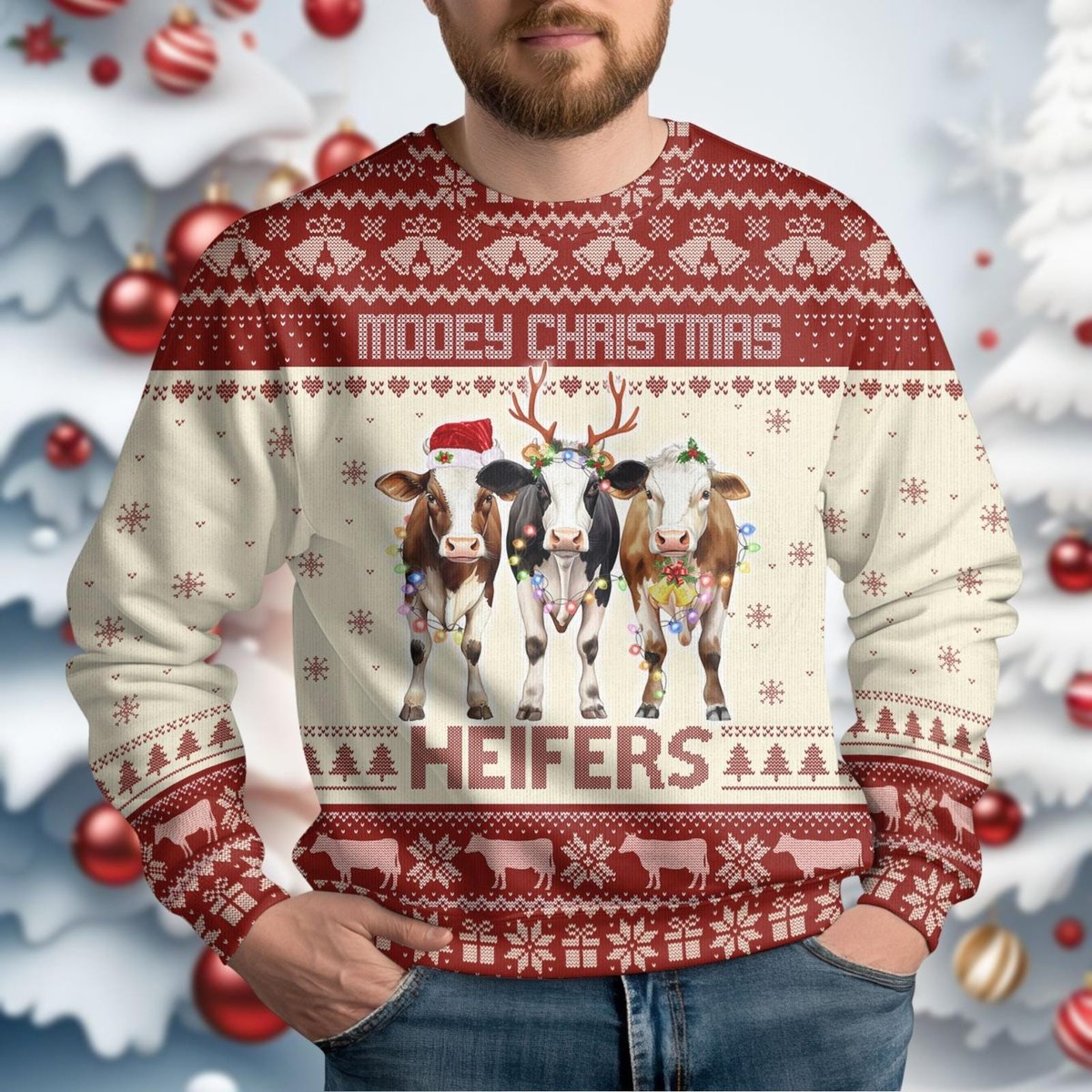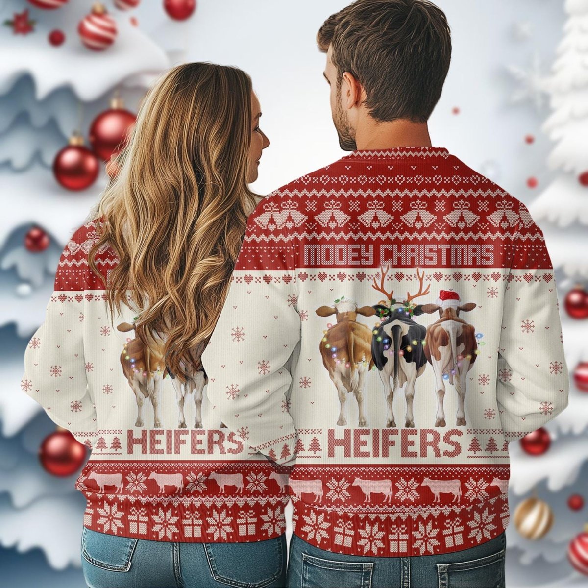 Mooey Heifers Christmas Cream Ugly Sweater Funny Cow Farm Animal Holiday Knit Jumper