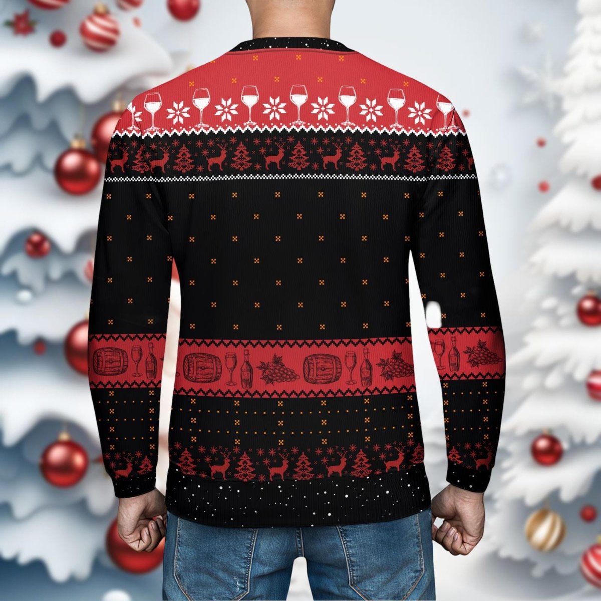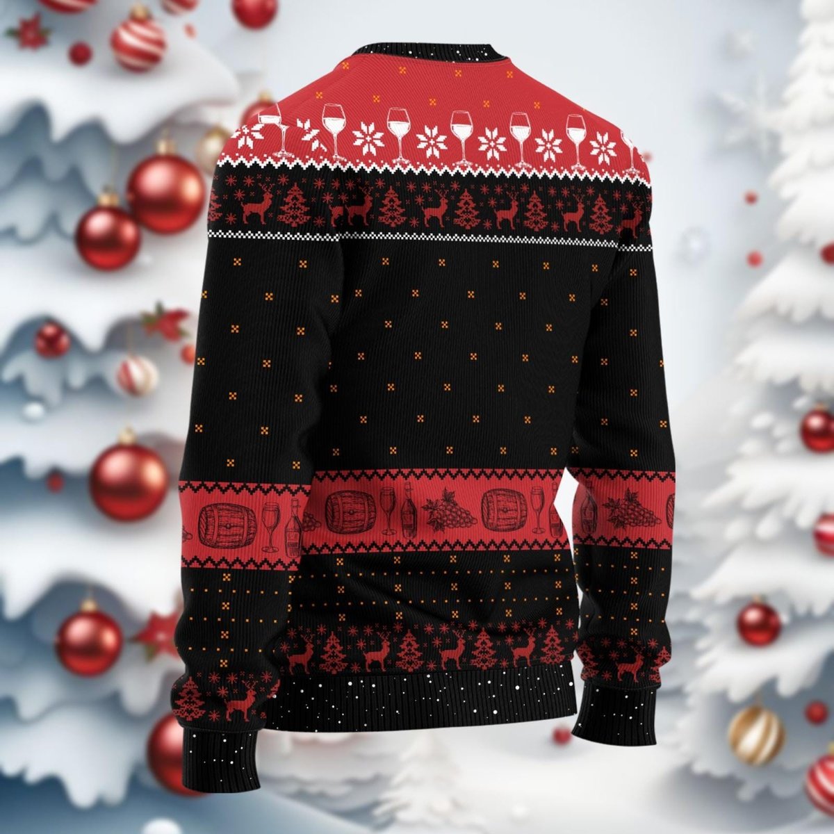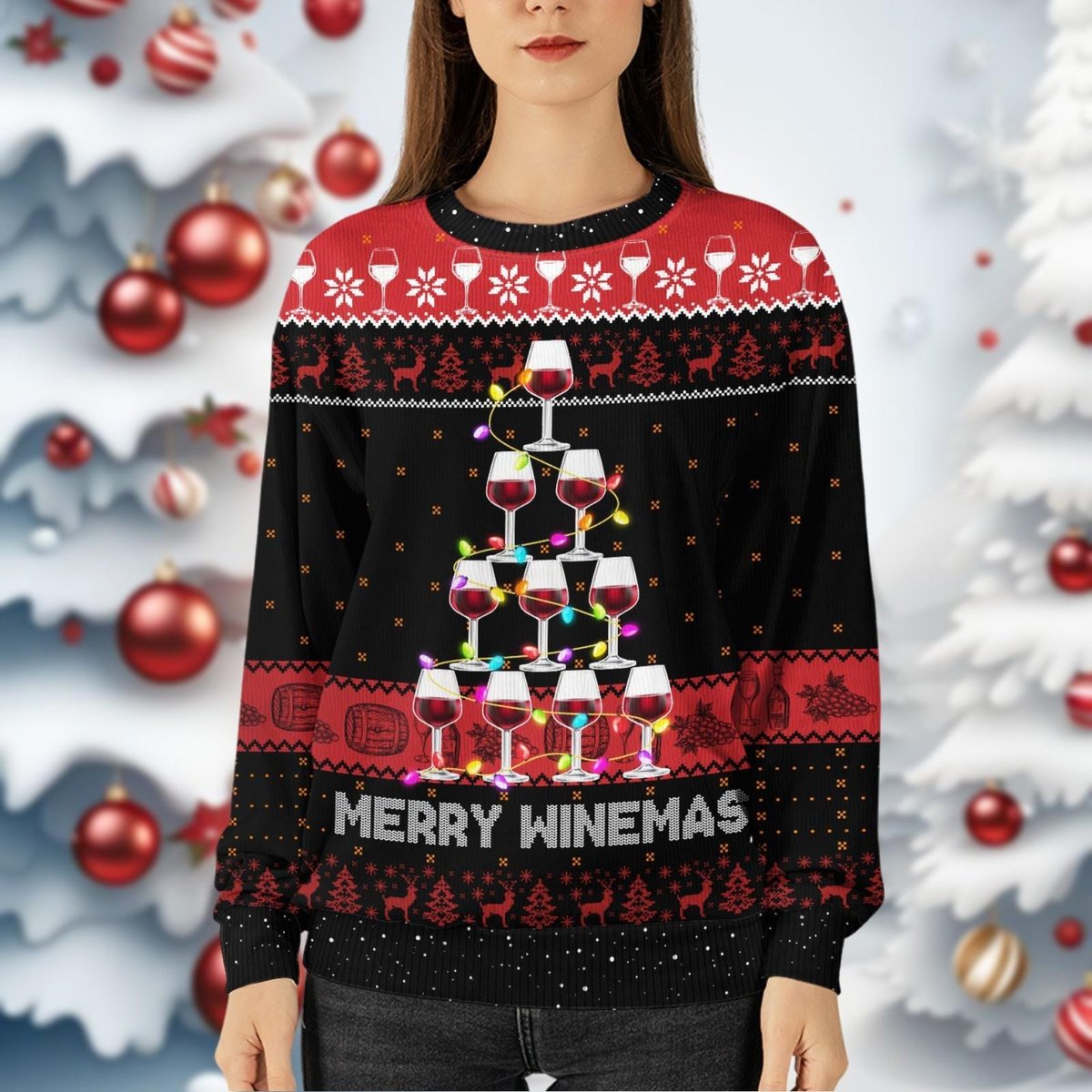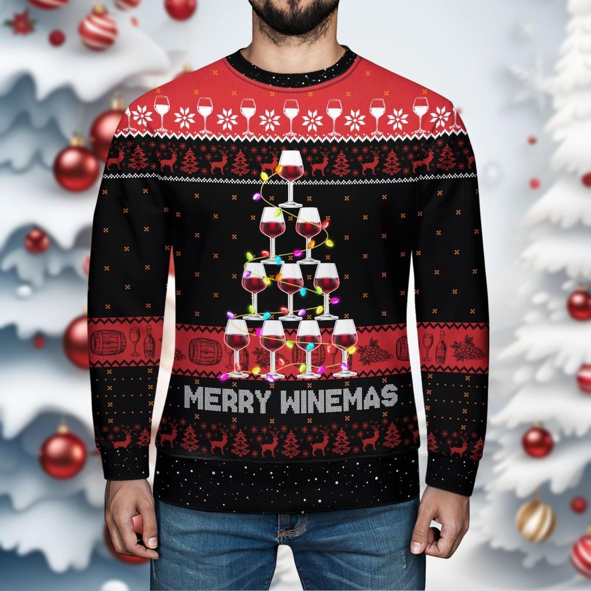 Merry Winemas Black Ugly Sweater Funny Wine Glass Tree Holiday Party Knit Jumper