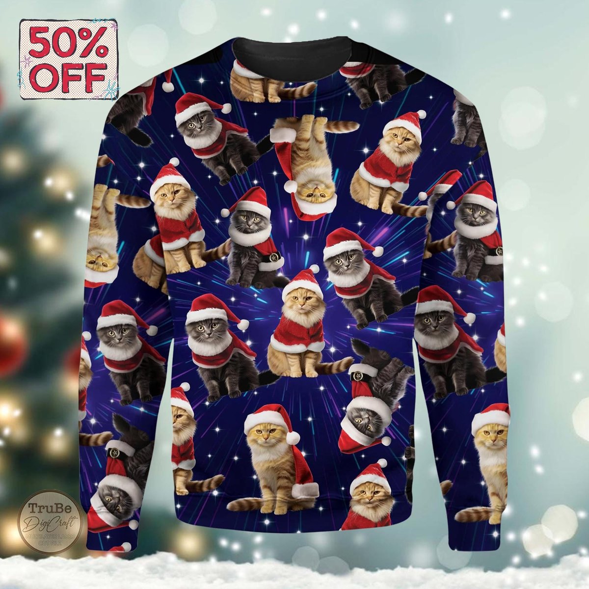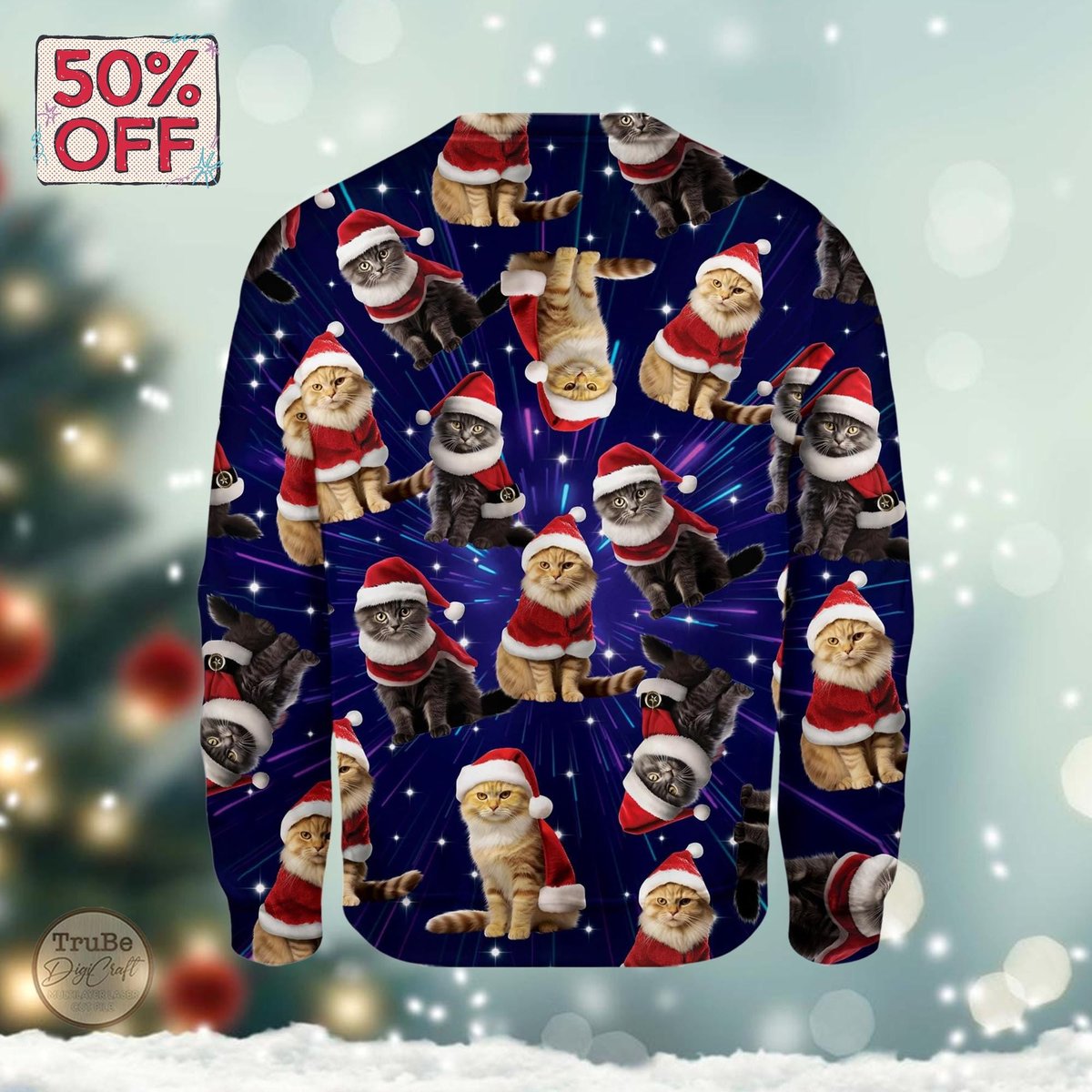 Santa Cat Galaxy Christmas Ugly Sweater Funny Space Cat Holiday Knit Jumper