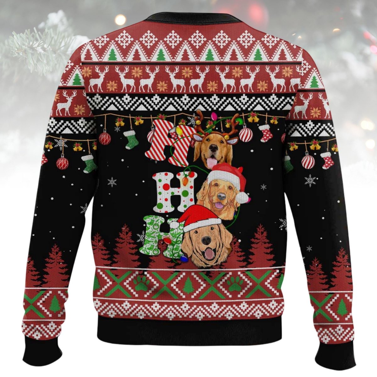 Golden Retriever Ho Ho Ho Black Ugly Christmas Sweater Holiday Knit Gift