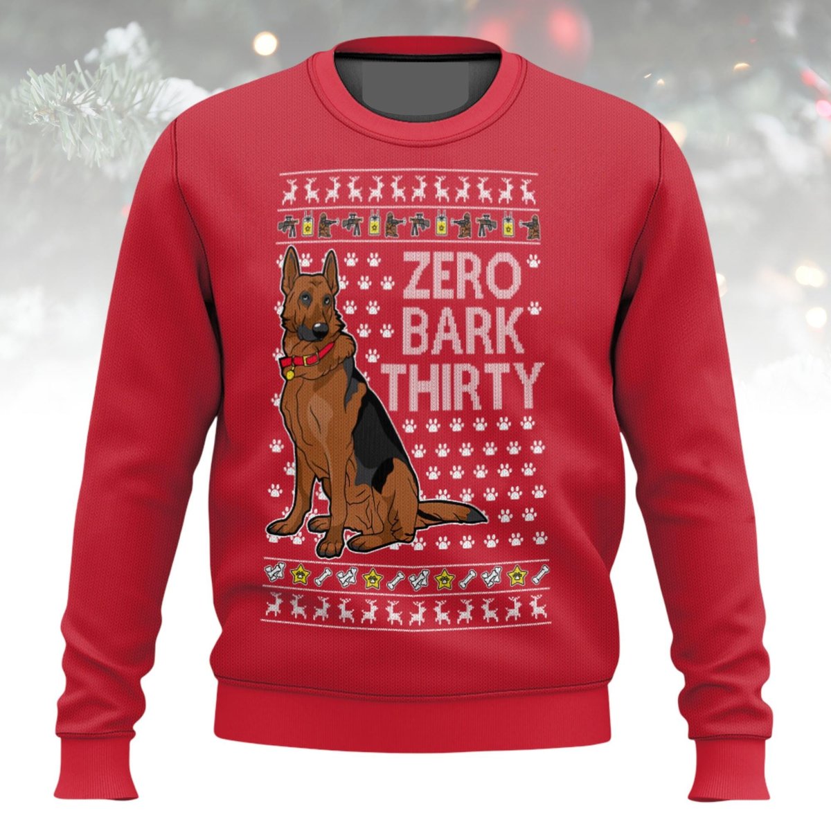 Zero Bark Thirty Funny Dog Red Ugly Christmas Sweater Holiday Knit Gift