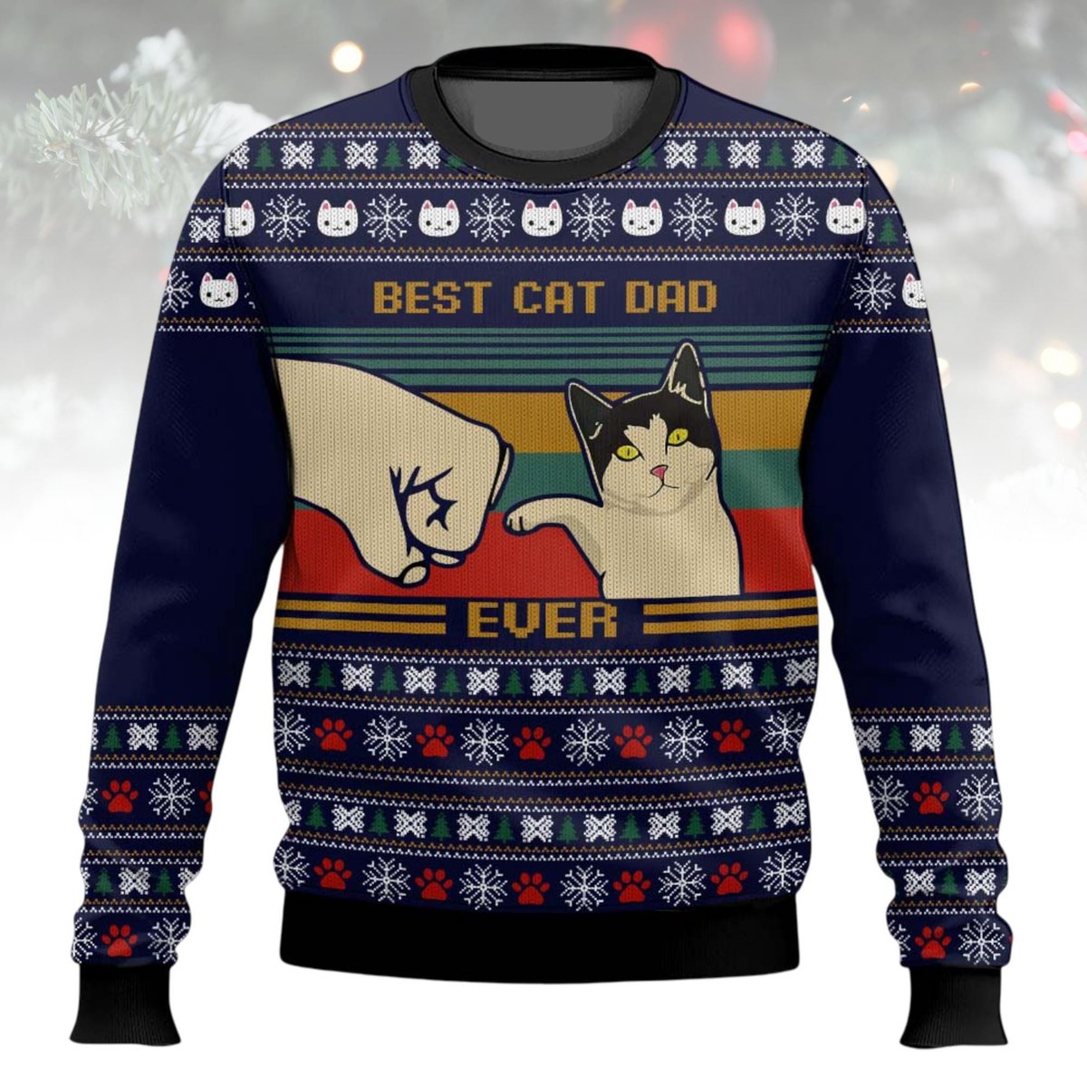 Best Cat Dad Ever Ugly Christmas Sweater Cat Lover Gift Holiday Knit Jumper