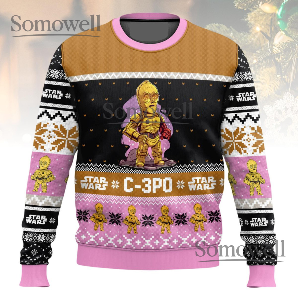 C-3PO Star Wars Christmas Sweater Gold Pink Holiday Knit