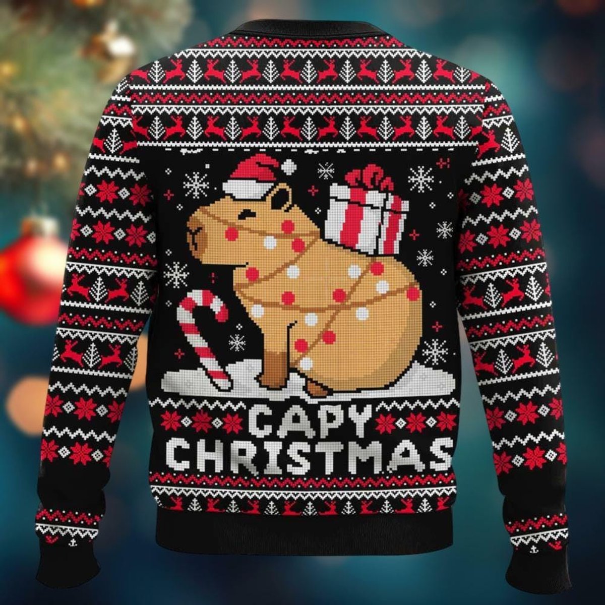 Capybara Black Christmas Ugly Sweater Capy Christmas Gift Candy Cane Knit Jumper