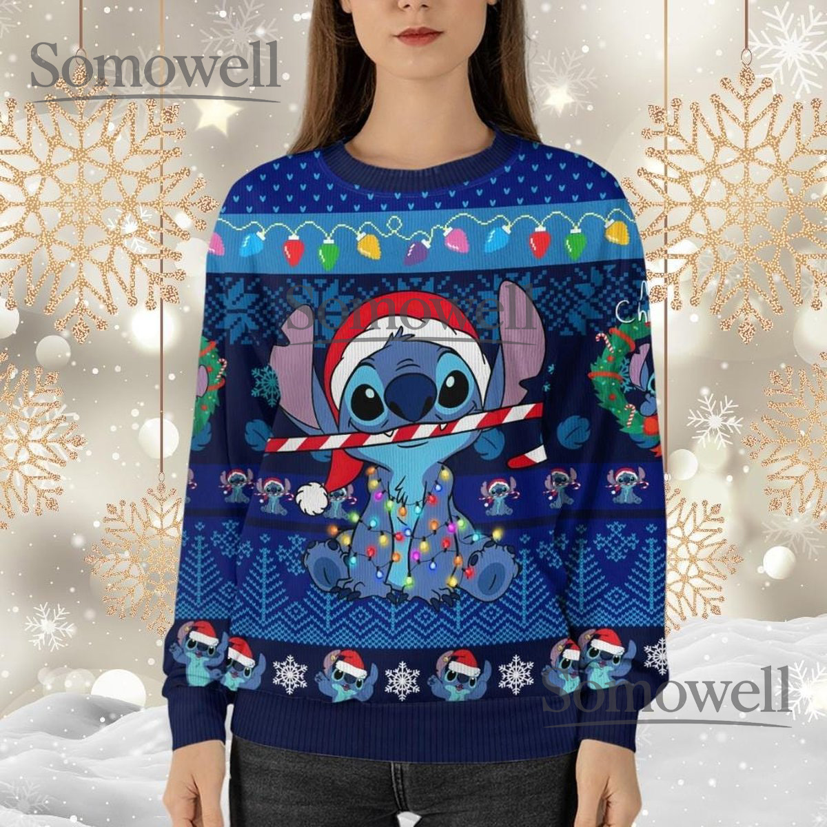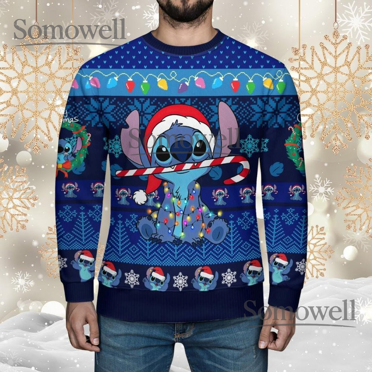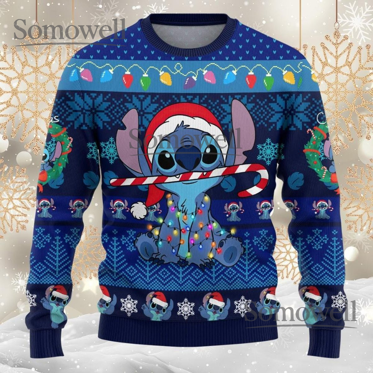 Candy Cane Stitch Blue Christmas Sweater Funny Holiday Knit