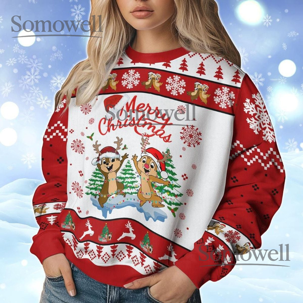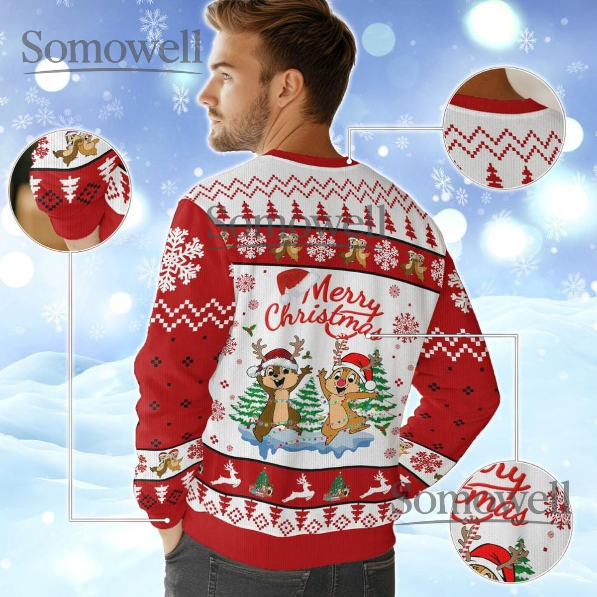 Chip and Dale Red Ugly Christmas Sweater Cute Disney Cartoon Holiday Knit Jumper