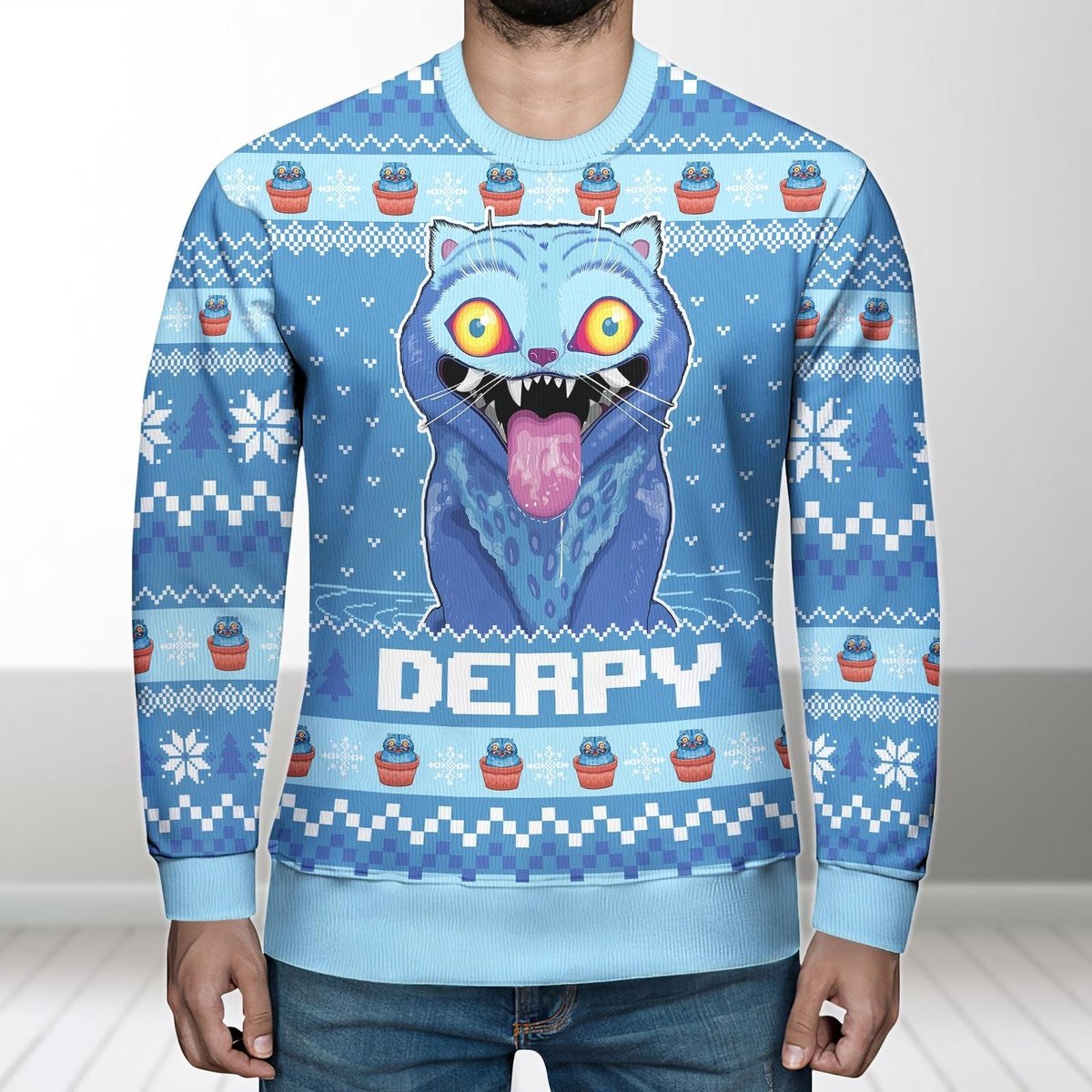 Derpy Tiger Ugly Christmas Sweater Cute Cat Lovers Holiday Party Gift