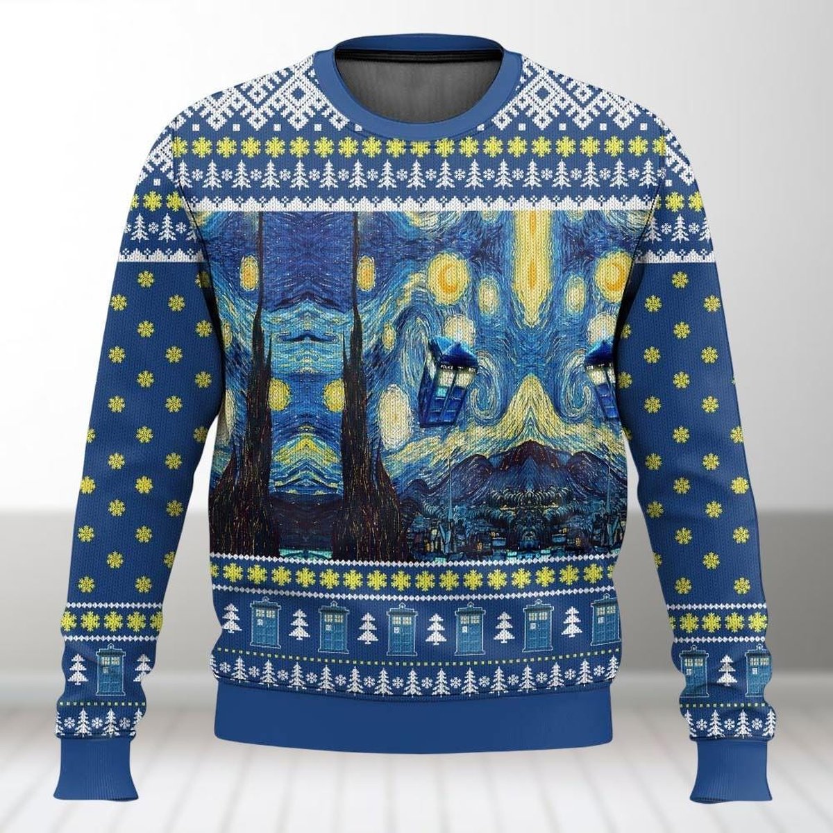 Doctor Who Starry Night Van Gogh Ugly Sweater Funny Sci Fi Fans Christmas Gift