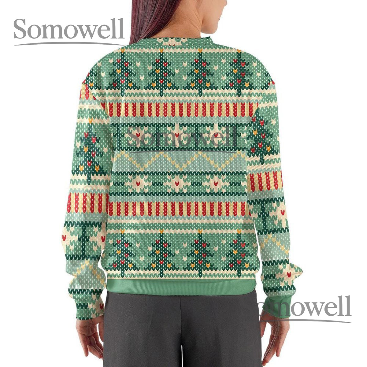 Funny Black Cat Santa Hat Knitted Sweater Christmas Tree Ugly Sweater Cozy Winter Gift
