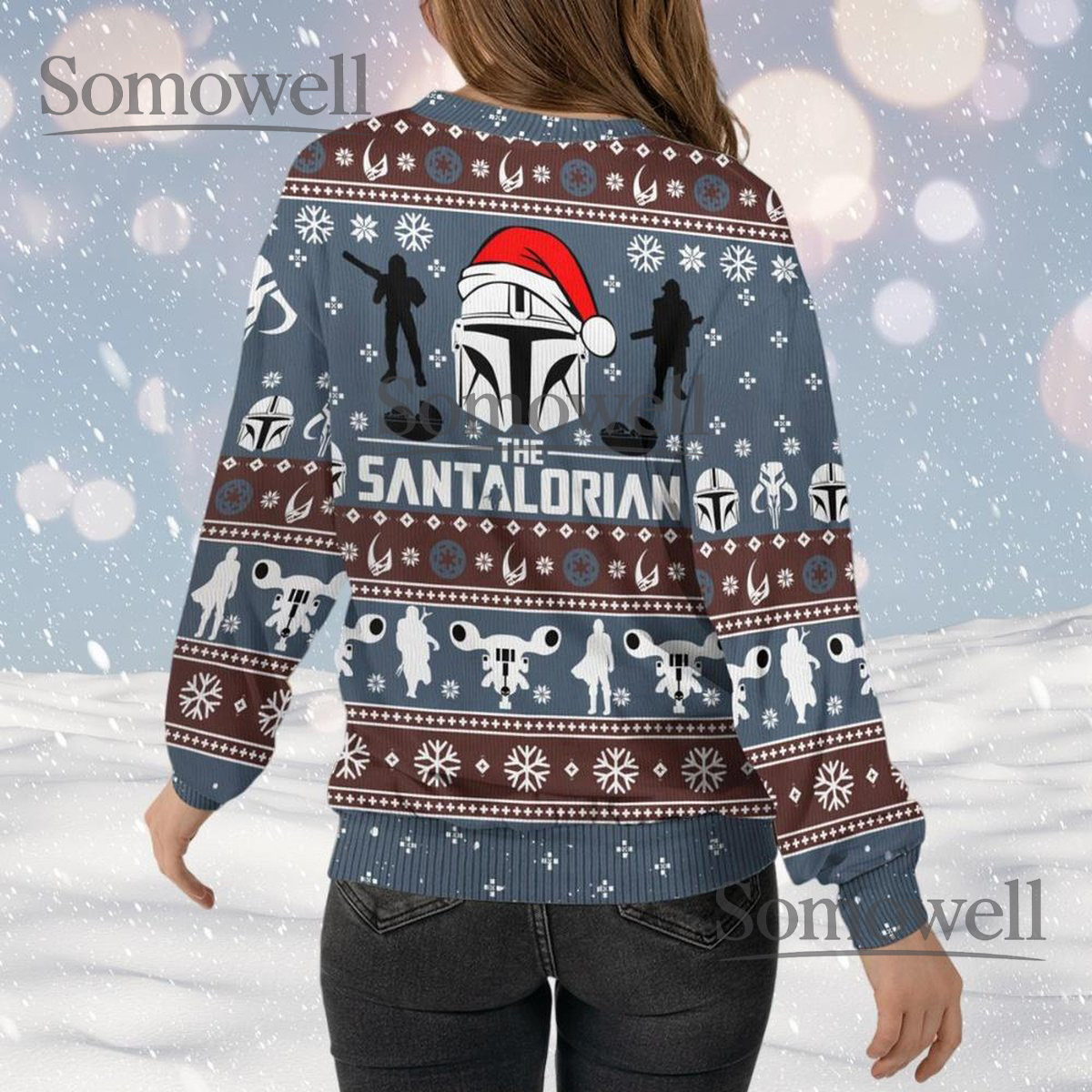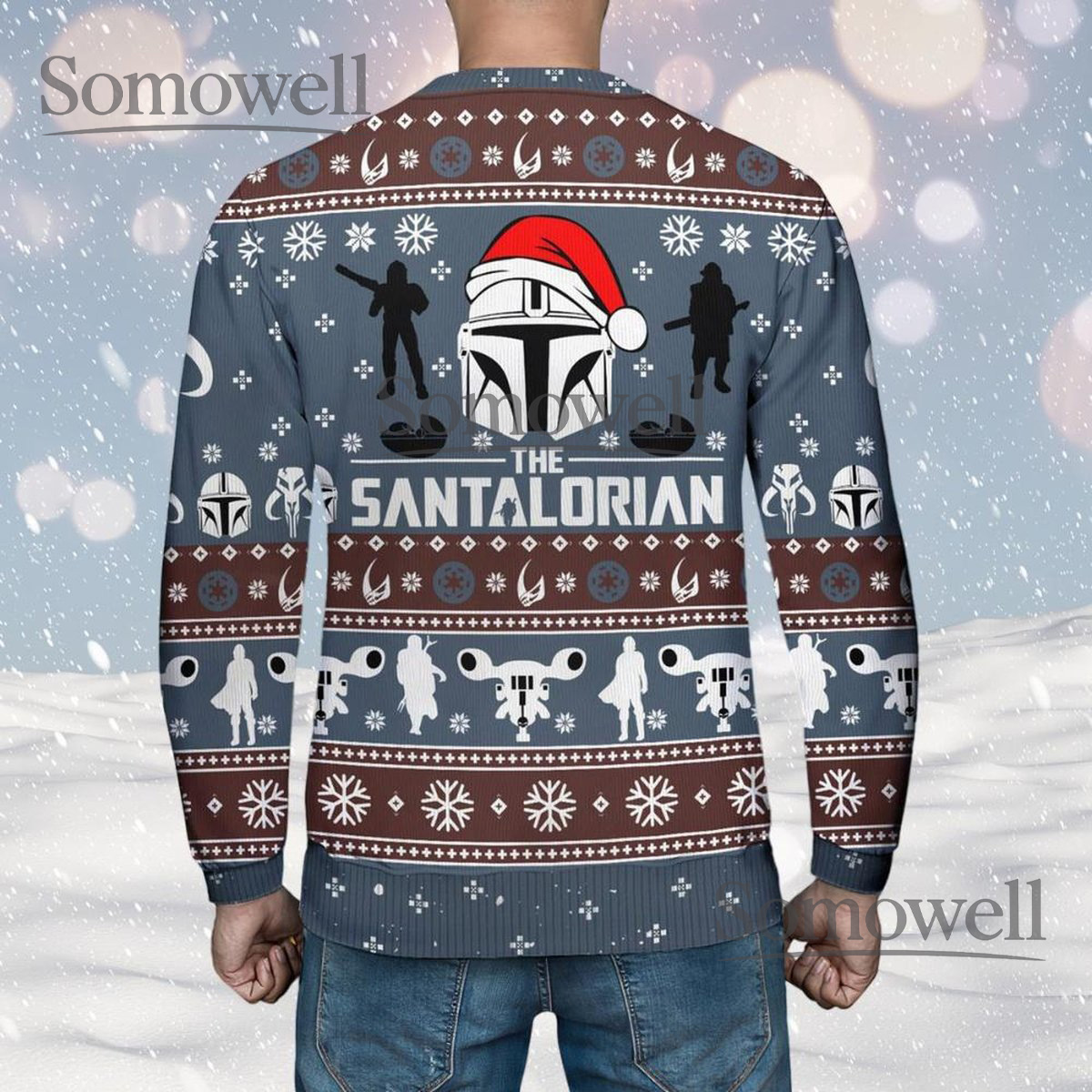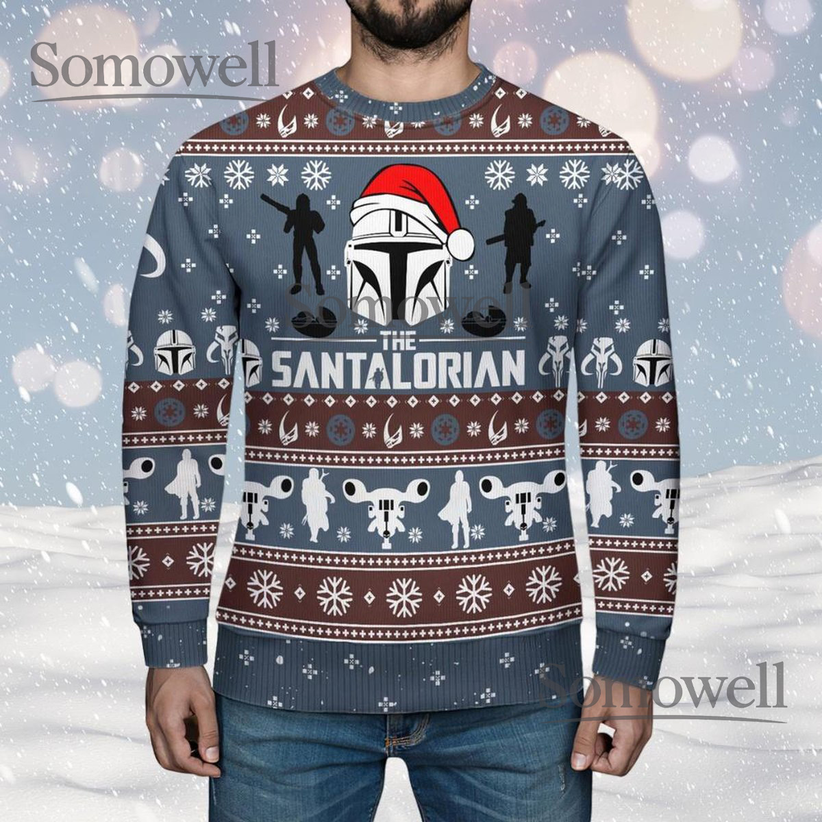 Mandalorian Blue Brown Ugly Christmas Sweater Funny Sci Fi Star Wars Holiday Knit Jumper