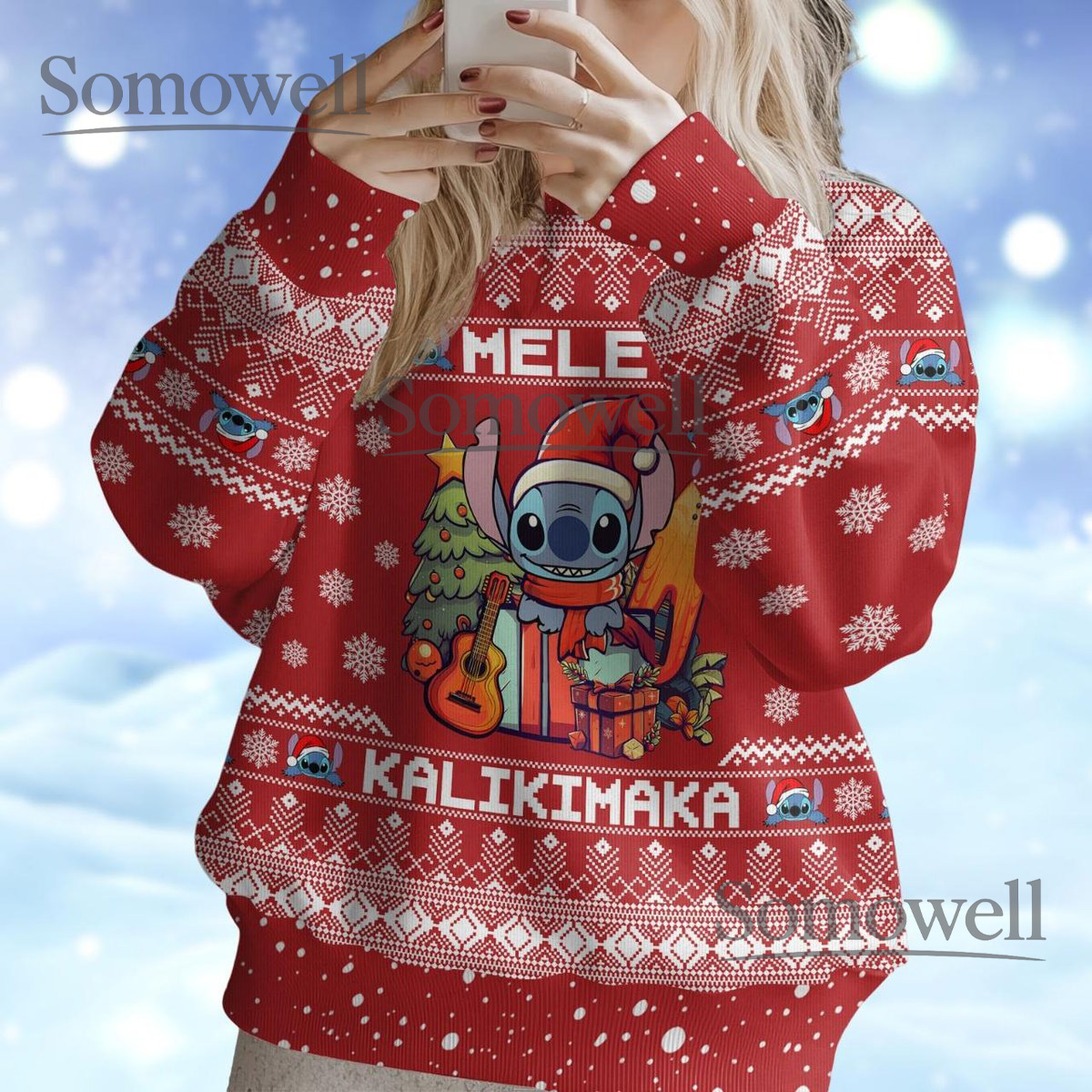 Mele Kalikimaka Stitch Christmas Sweater Red Holiday Knit