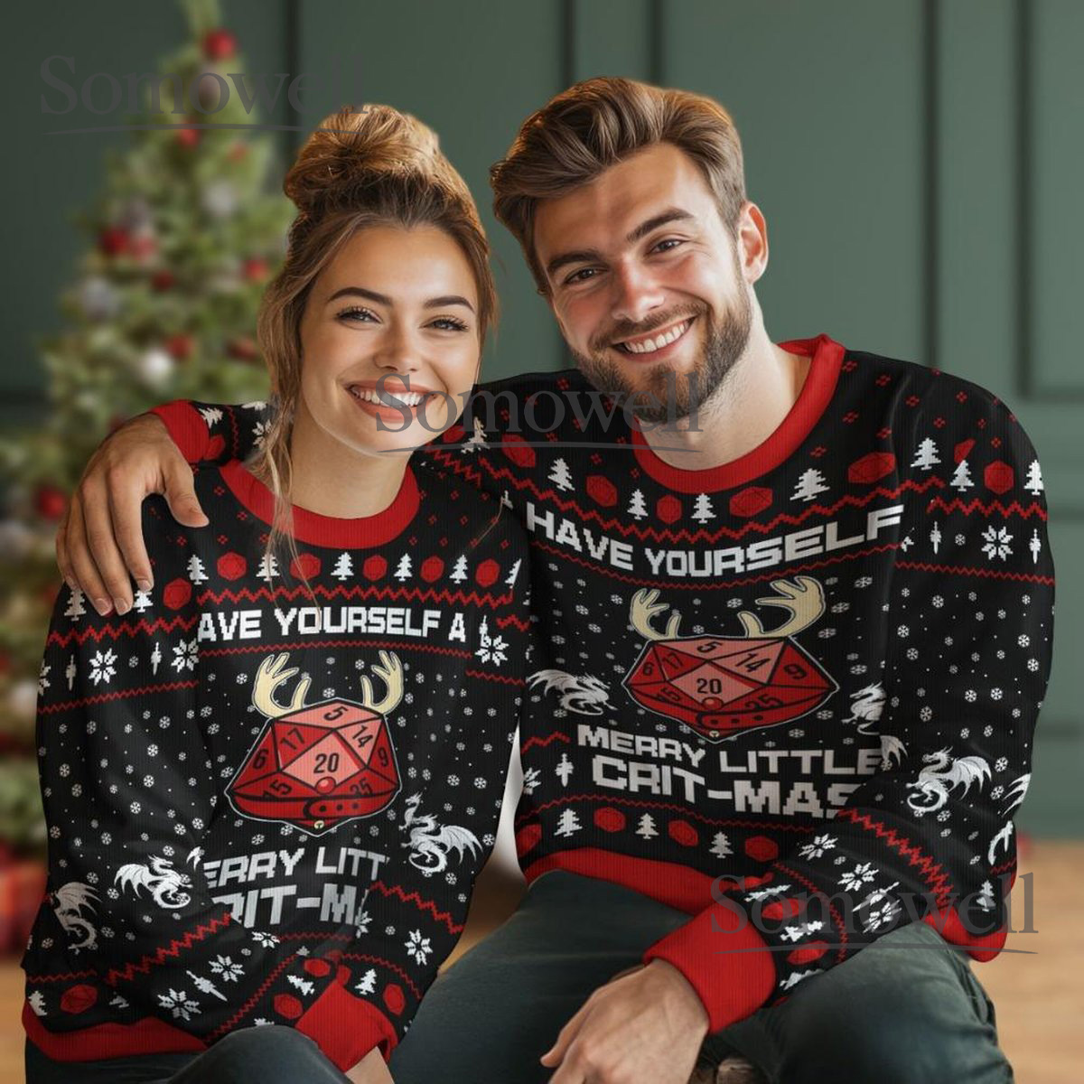 Merry Little Critmas Dungeons and Dragons Black Ugly Christmas Sweater Holiday Knit Gift