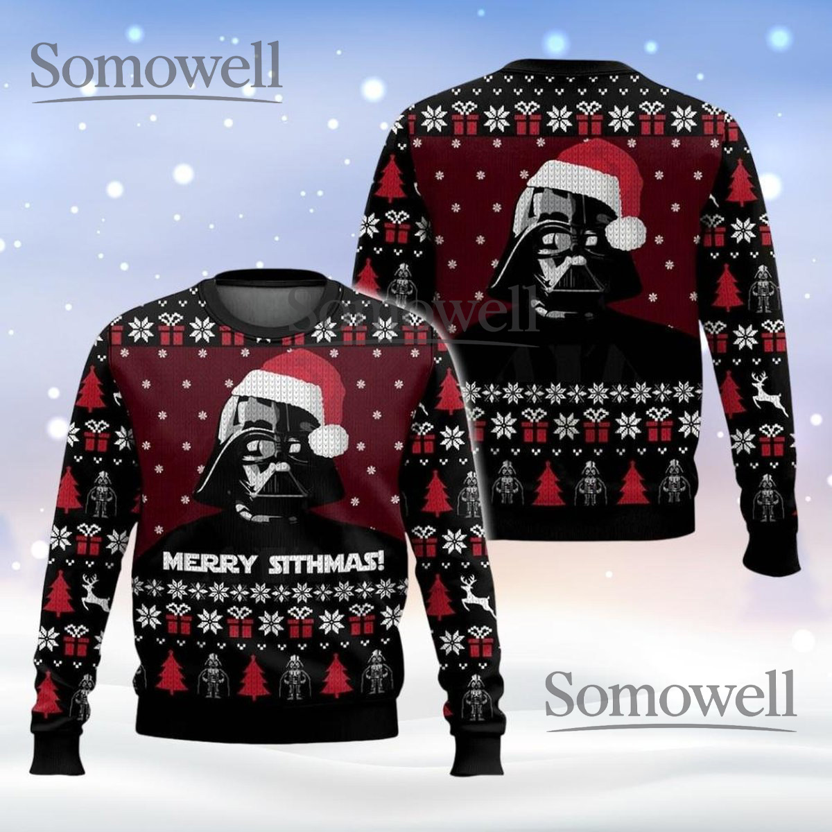 Merry Sithmas Darth Vader Black Ugly Christmas Sweater Star Wars Holiday Knit Jumper