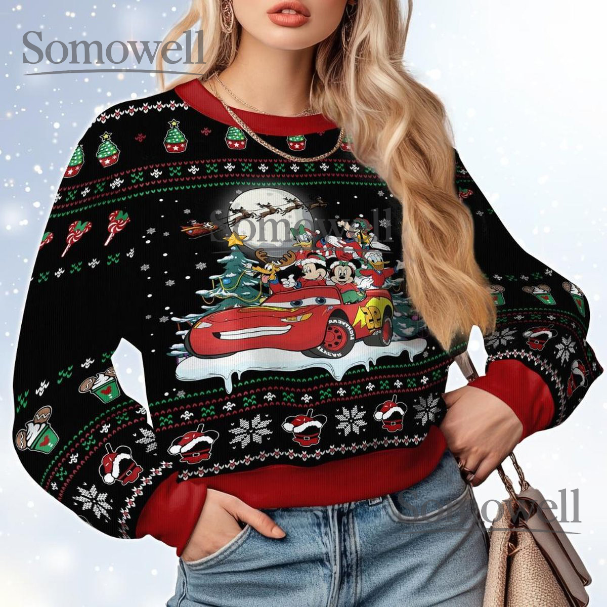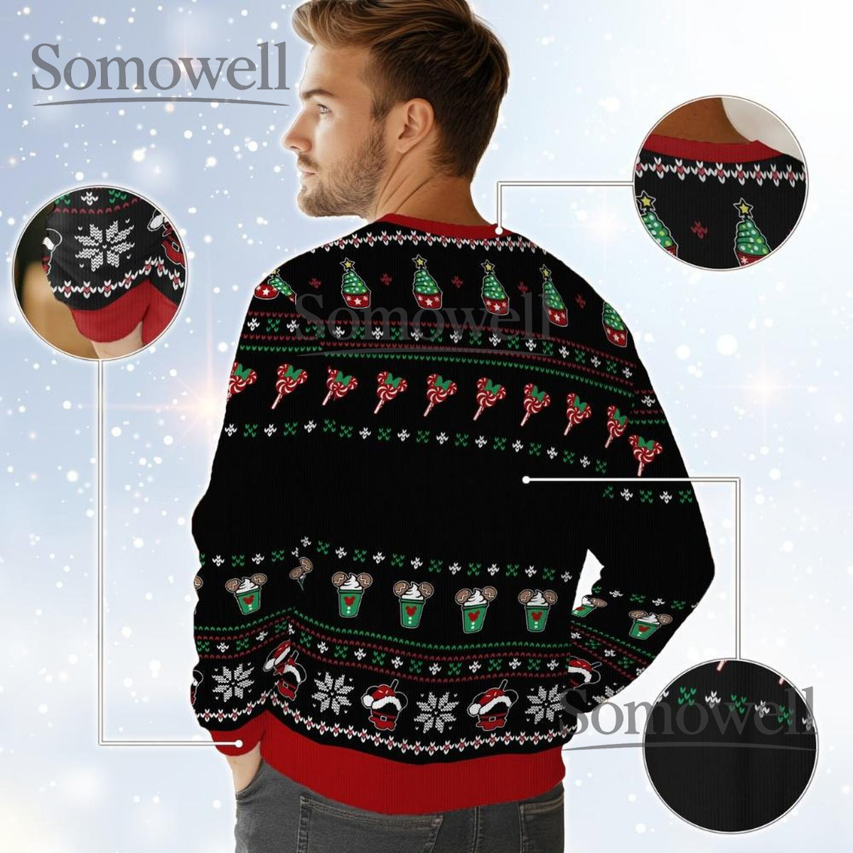 Mickey Friends Black Ugly Christmas Sweater Cartoon Character Holiday Knit Jumper