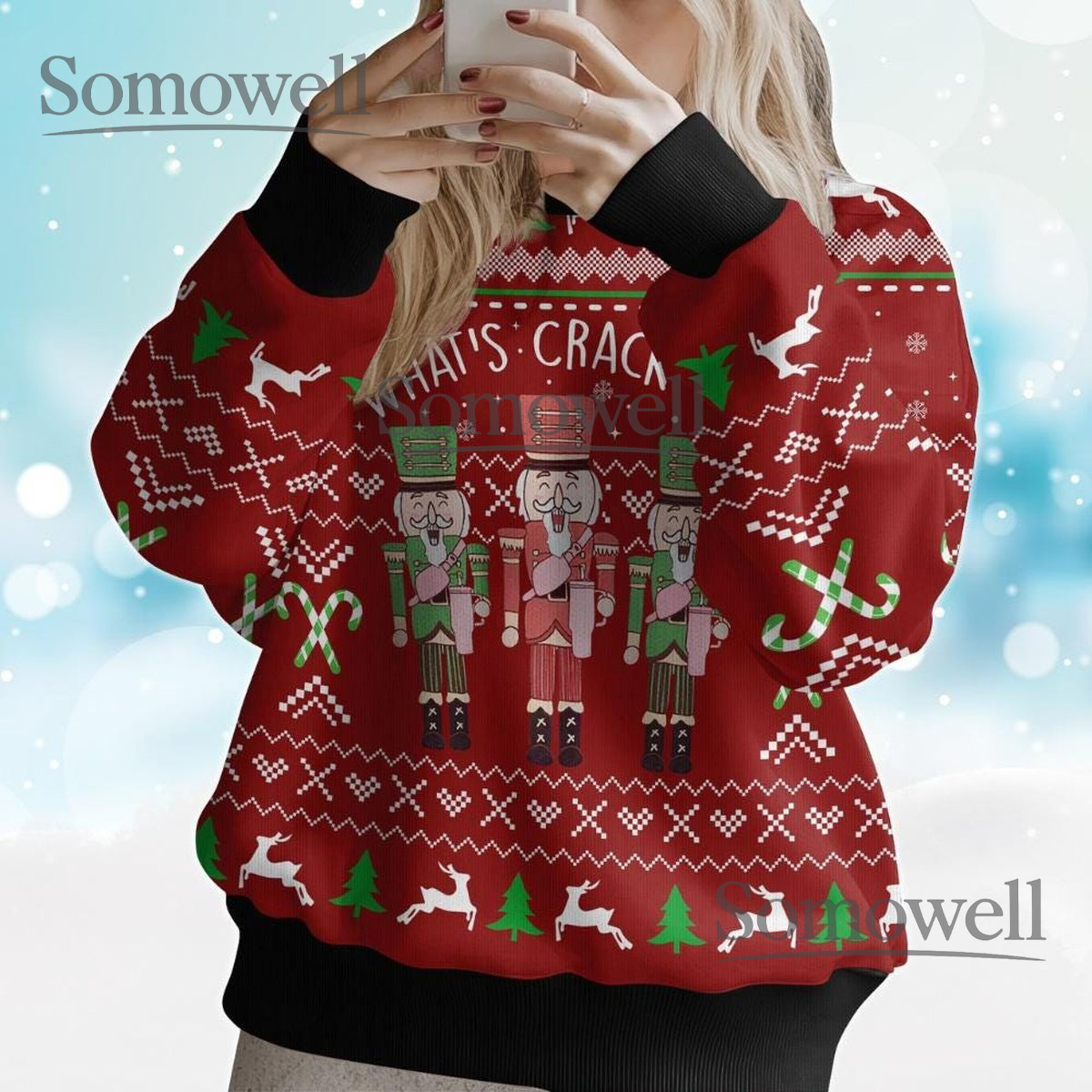Nutcracker Red Ugly Christmas Sweater Cute What’s Cracking Funny Holiday Knit Jumper