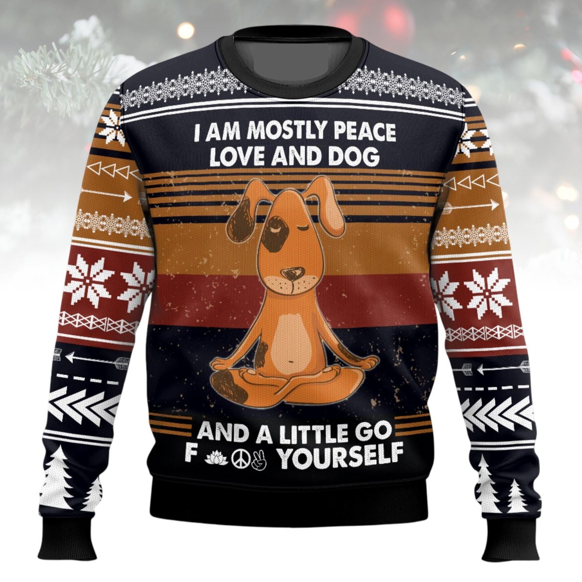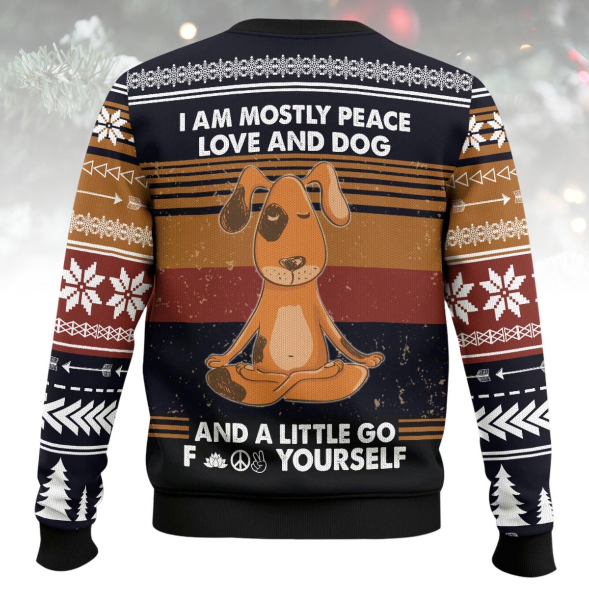 Peace Love And Dog Funny Ugly Christmas Sweater Holiday Knit Gift