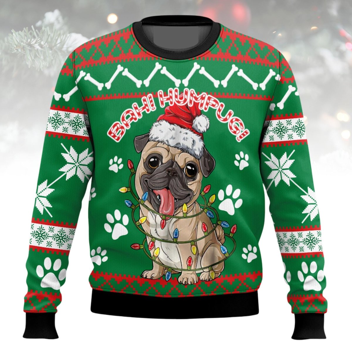 Pug Bah Humpug Green Ugly Christmas Sweater Holiday Knit Gift