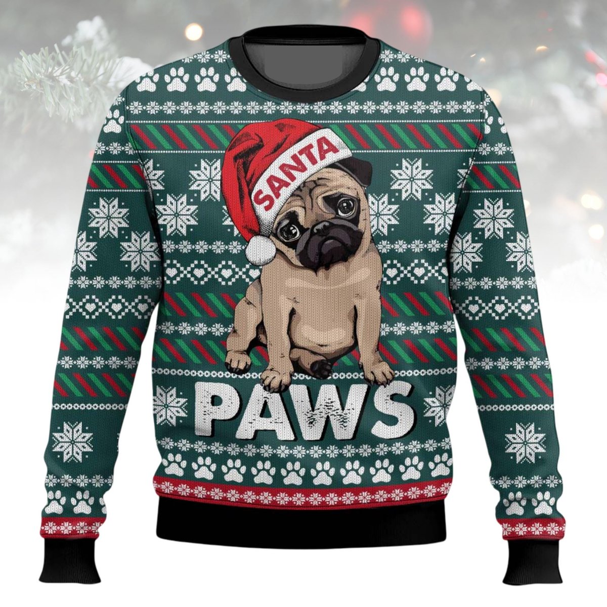 Pug Santa Paws Green Ugly Christmas Sweater Holiday Knit Gift
