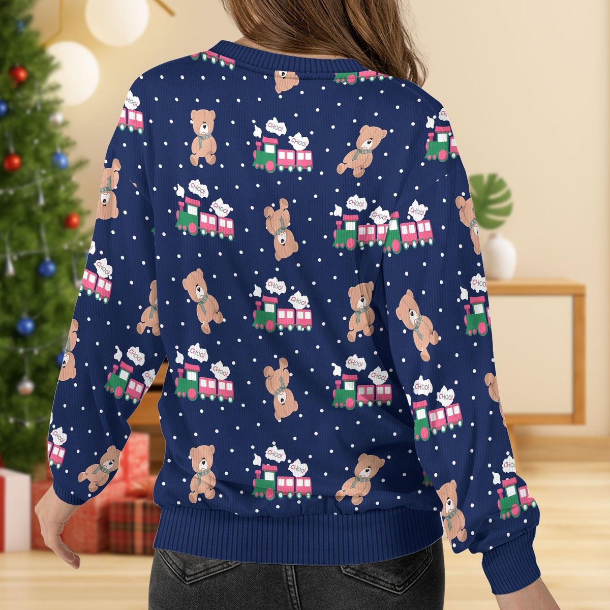 Rumi Choo Choo Bear Train Ugly Sweater Cute Christmas Holiday Gift For Kids