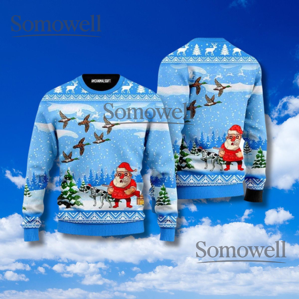 Santa Duck Hunting Christmas Sweater Funny Winter Holiday Gift
