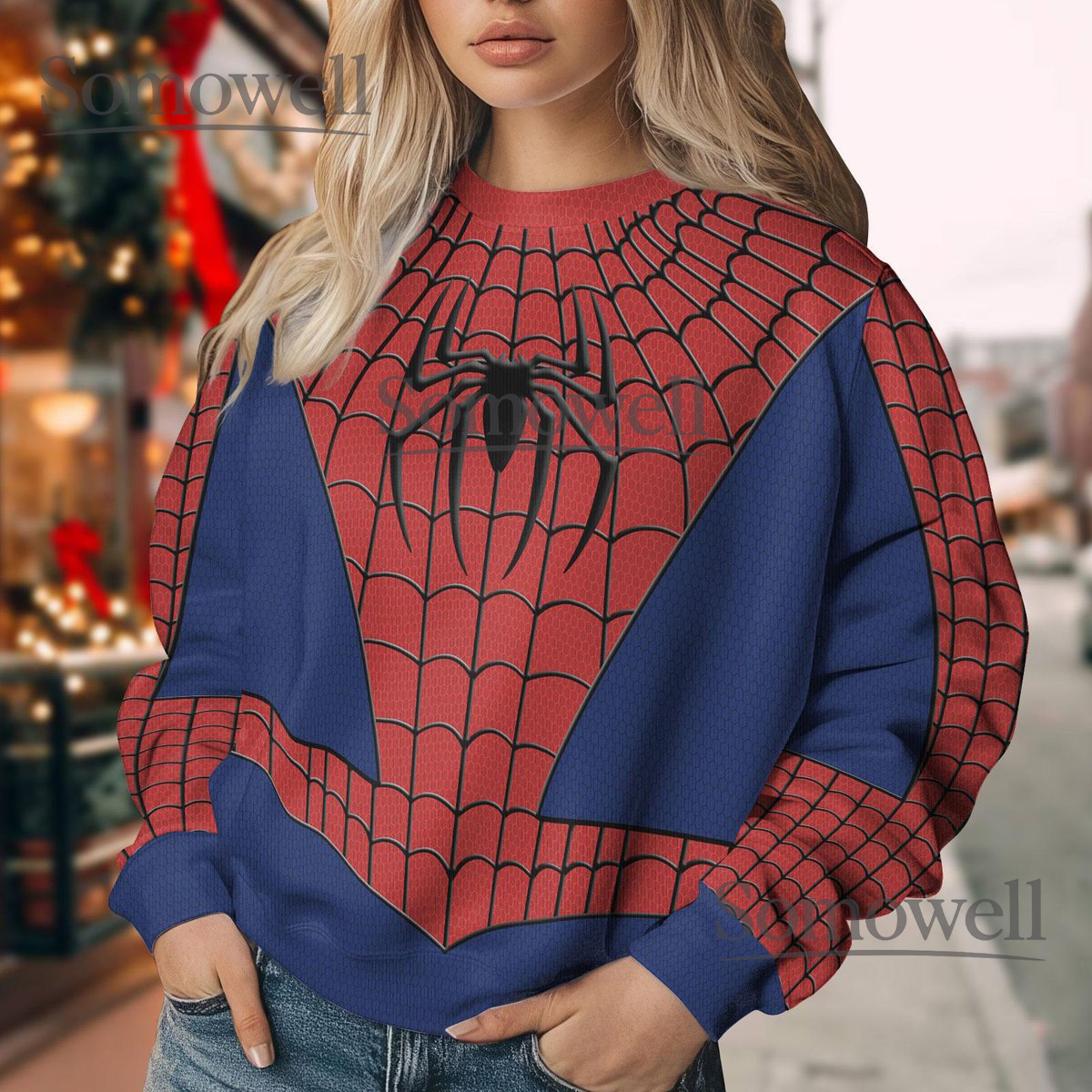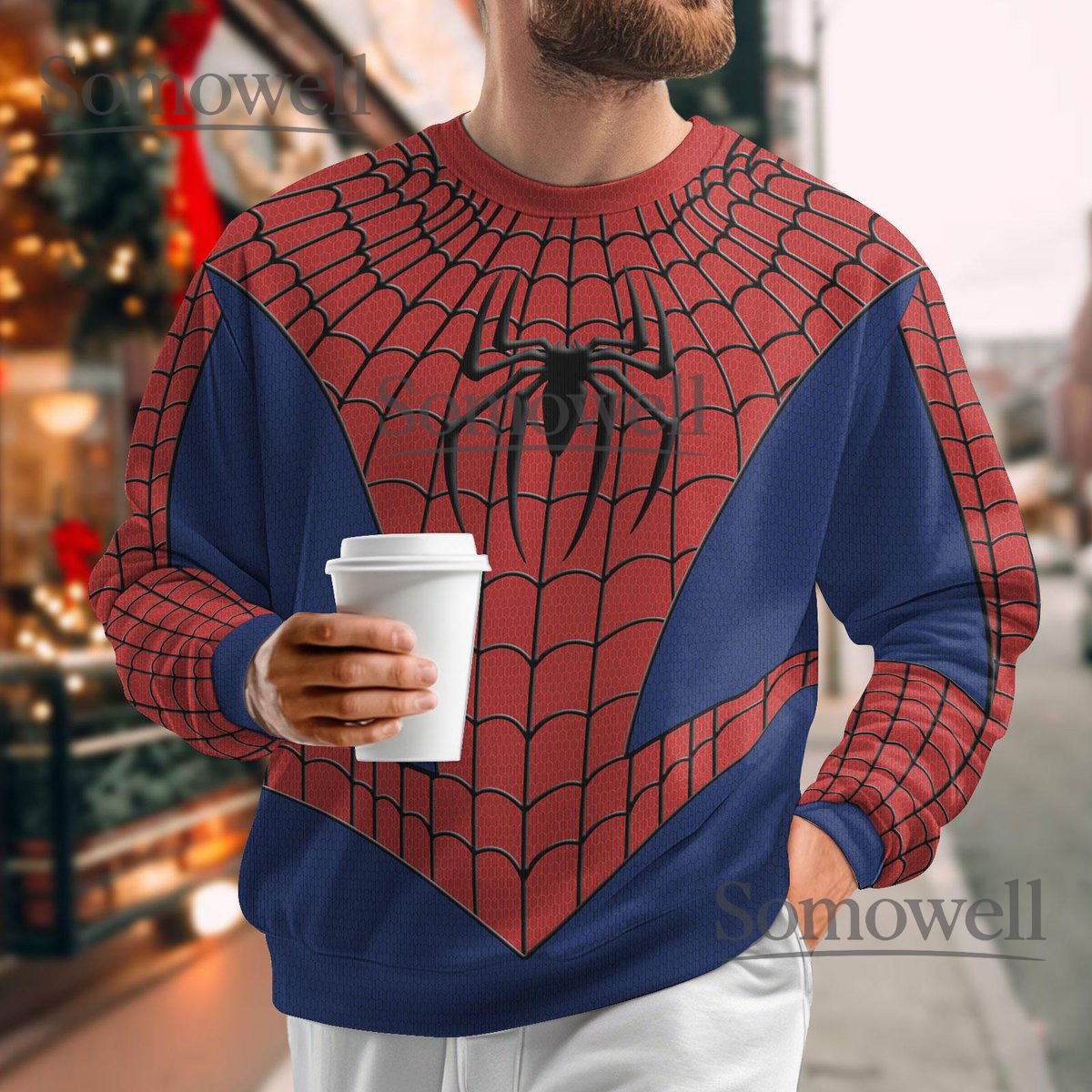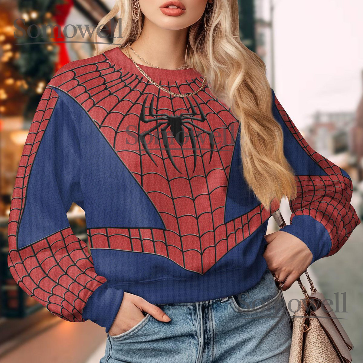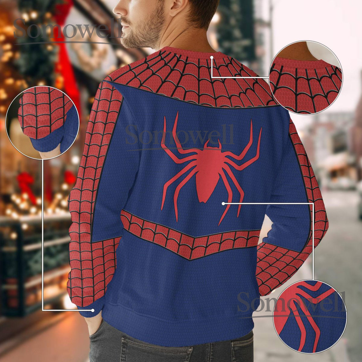 Spider-Man Suit Pattern Christmas Sweater Red Blue Hero Knit