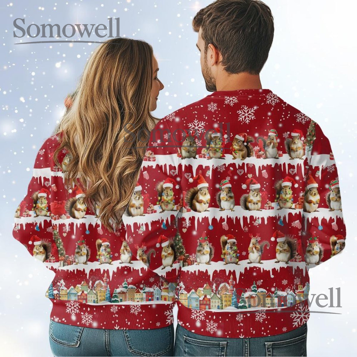 Squirrel Christmas Sweater Red Winter Holiday Cute Animals Knit