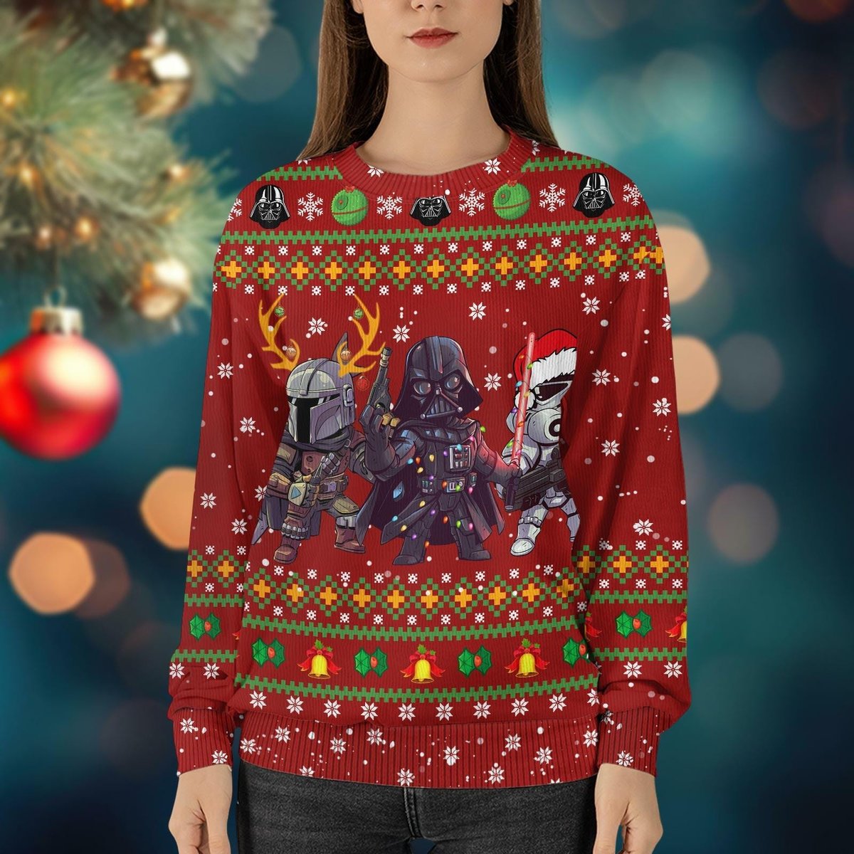 Star Wars Chibi Characters Ugly Christmas Sweater Funny Red Holiday 2025