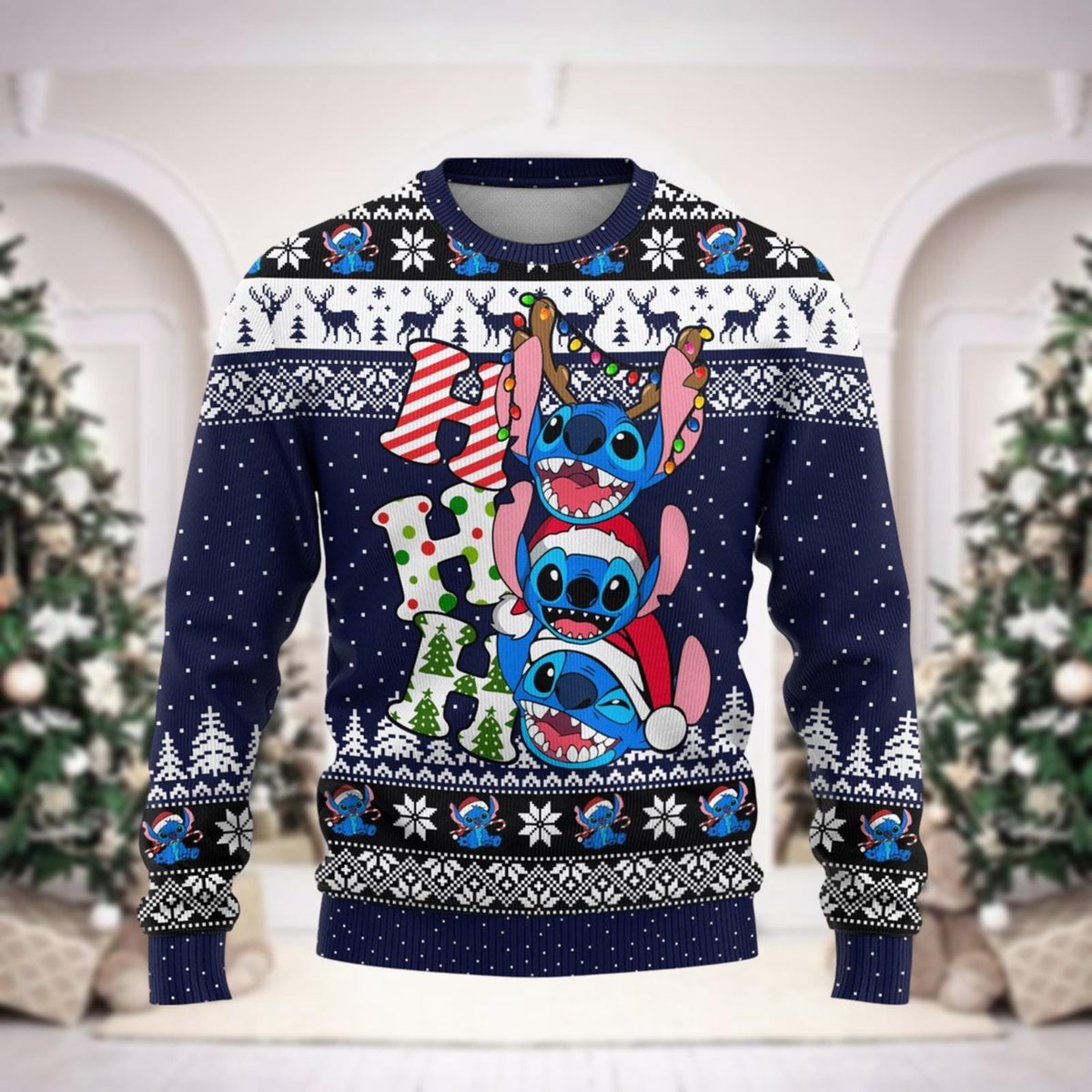 Stitch Navy Blue Christmas Ugly Sweater Ohana Holiday Funny Character Knit Jumper