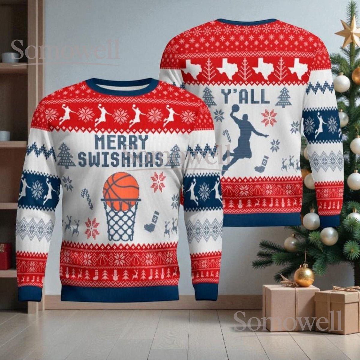 Basketball Swishmas Christmas White Ugly Sweater Sport Holiday Knit Jumper