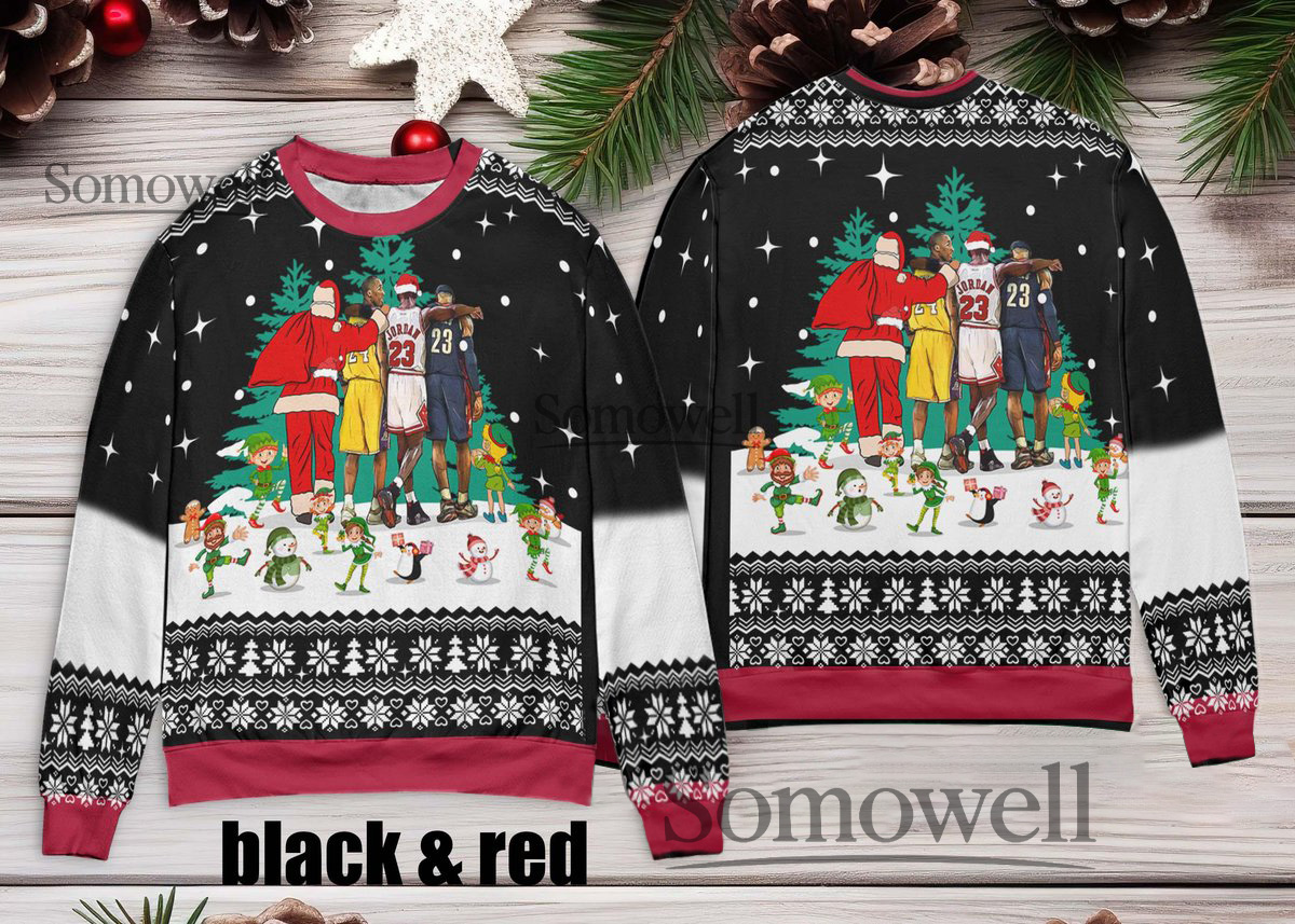 Basketball Legends Christmas Team Ugly Christmas Sweater Red Black Sports Fan Edition Multi Color Edition