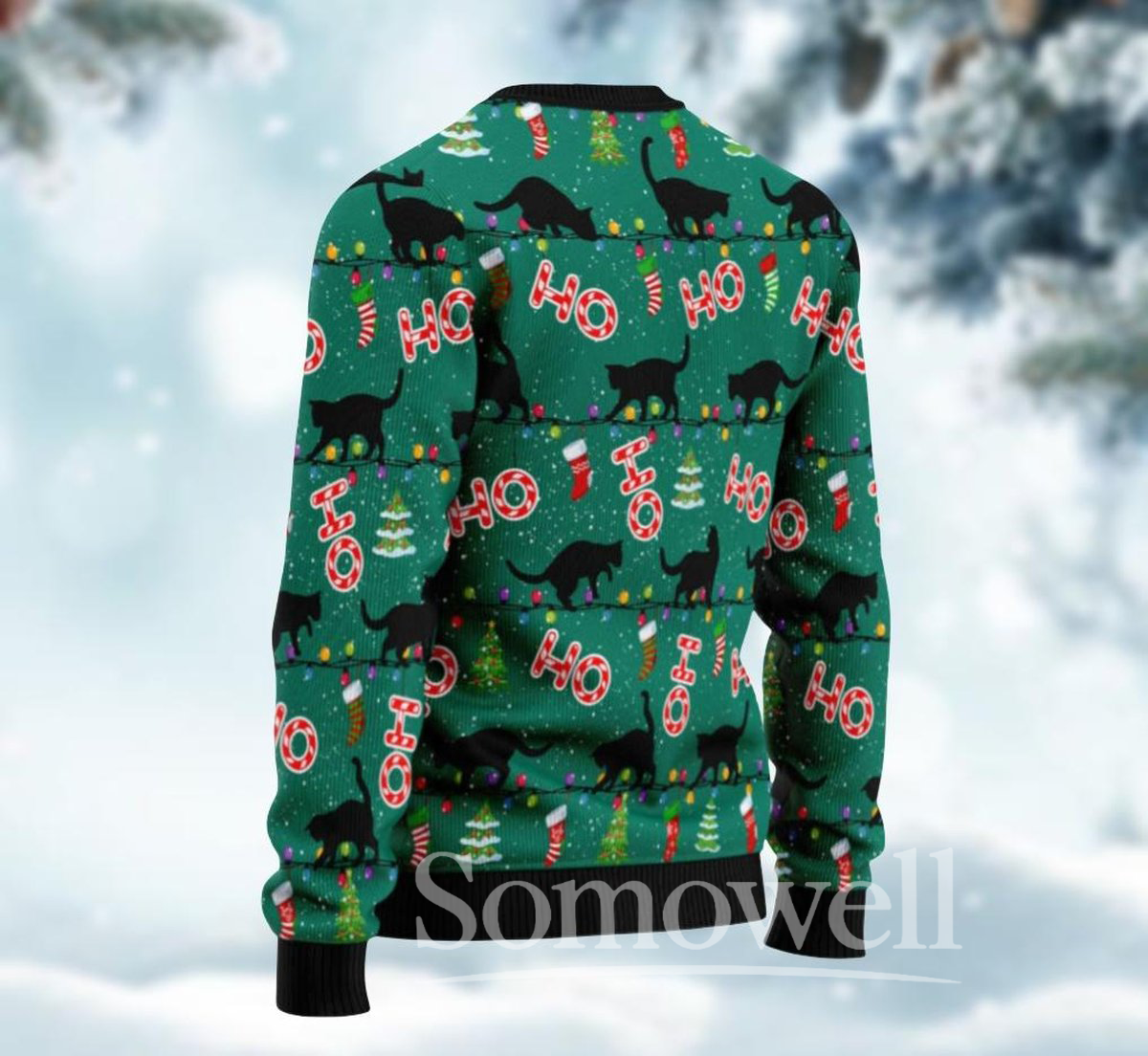 Black Cat Ho Ho Ho Ugly Christmas Sweater Funny Holiday Knit Pullover for Cat Lovers