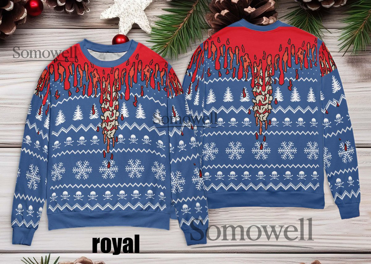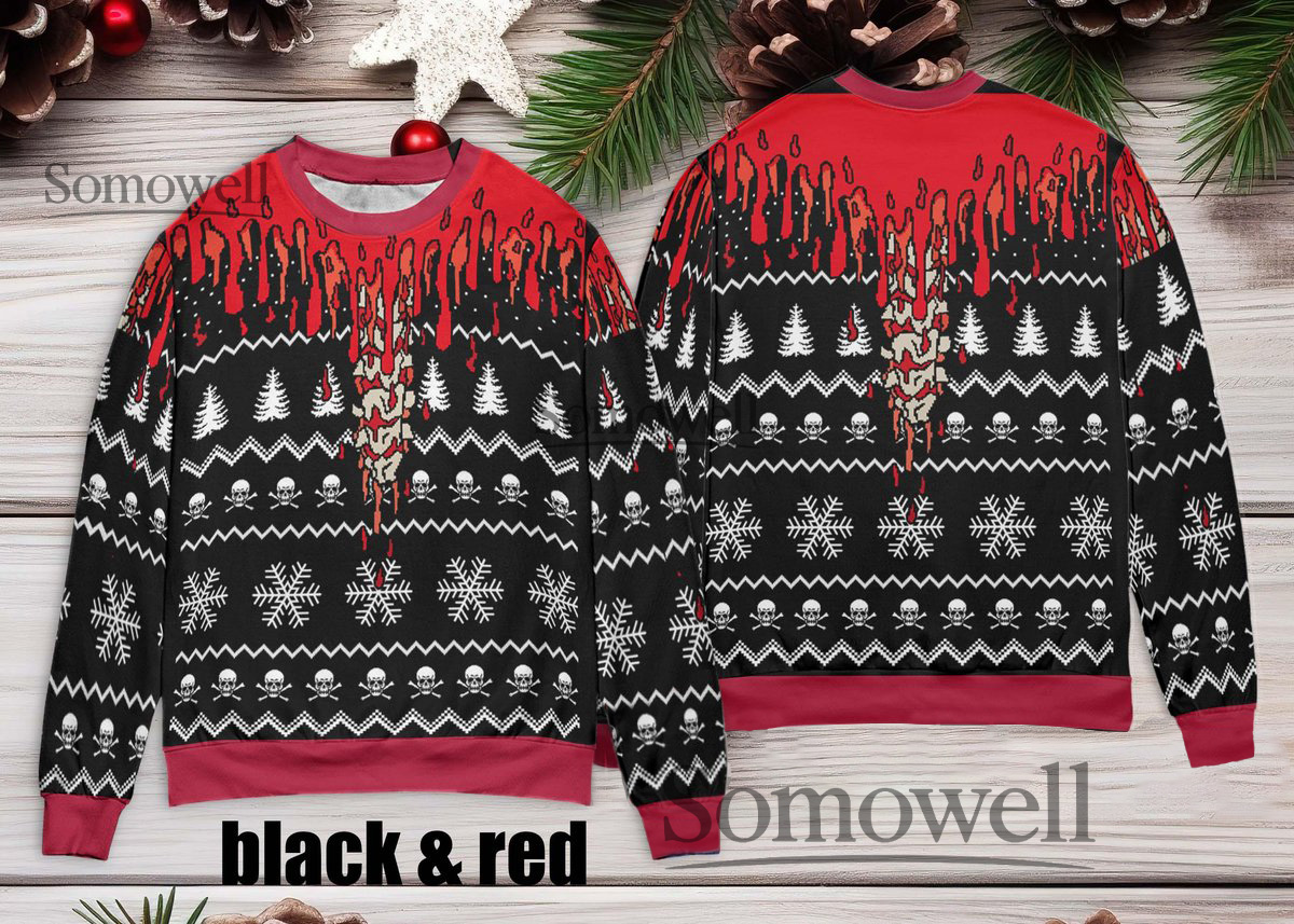 Bloody Horror Halloween Skull Ugly Christmas Sweater Forest Green Scary Edition Multi Color Edition