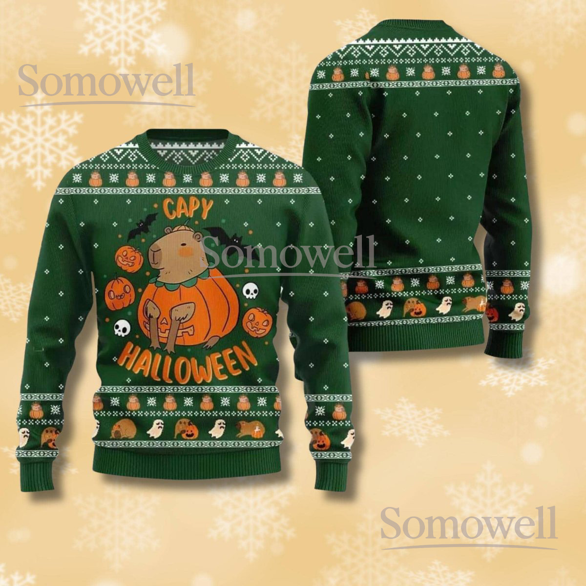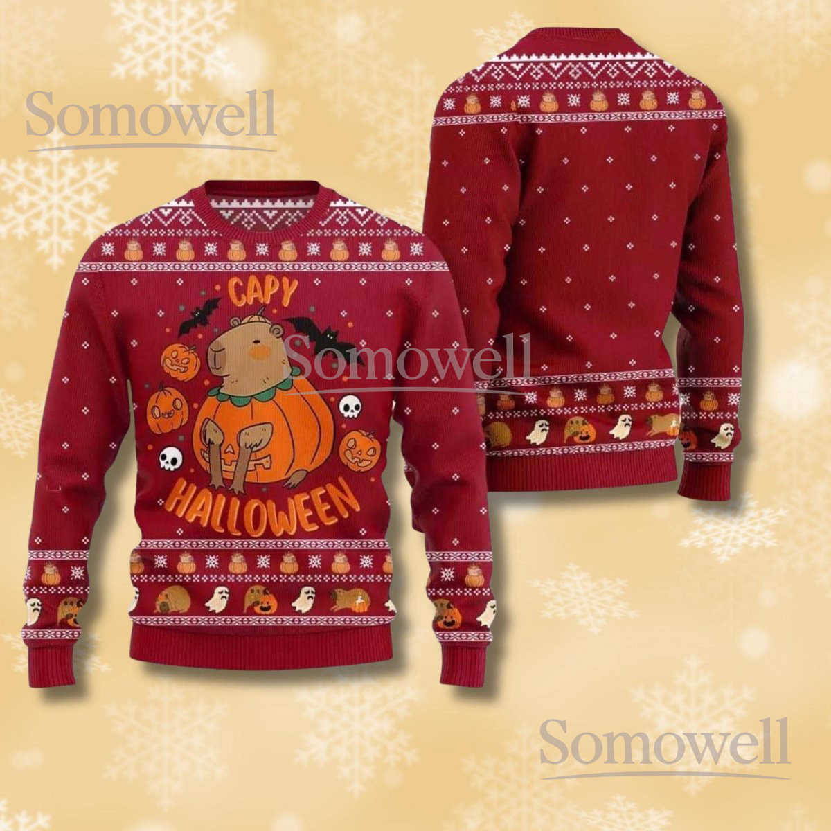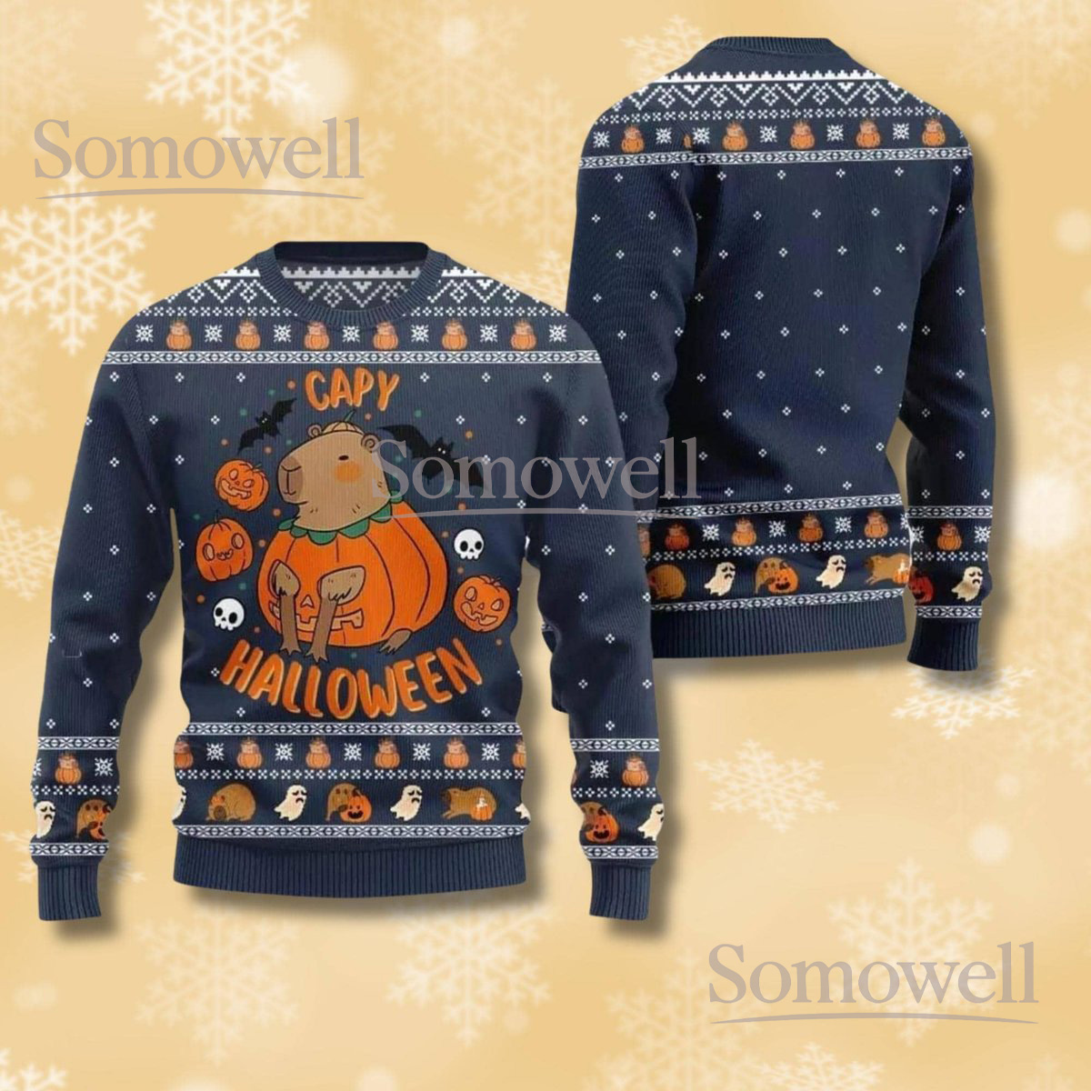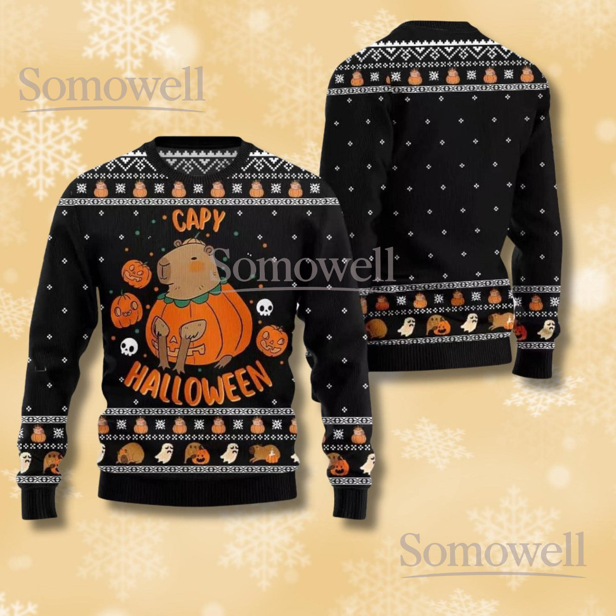 Capybara Halloween Orange Ugly Sweater Pumpkin Animal Funny Holiday Knit Jumper