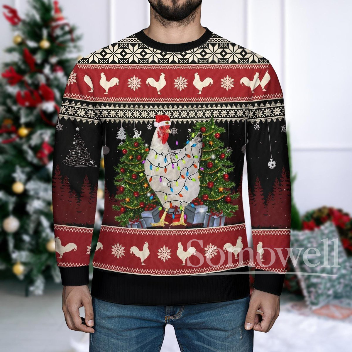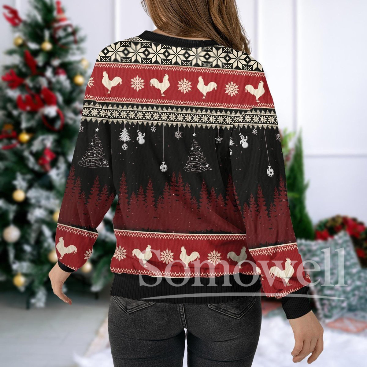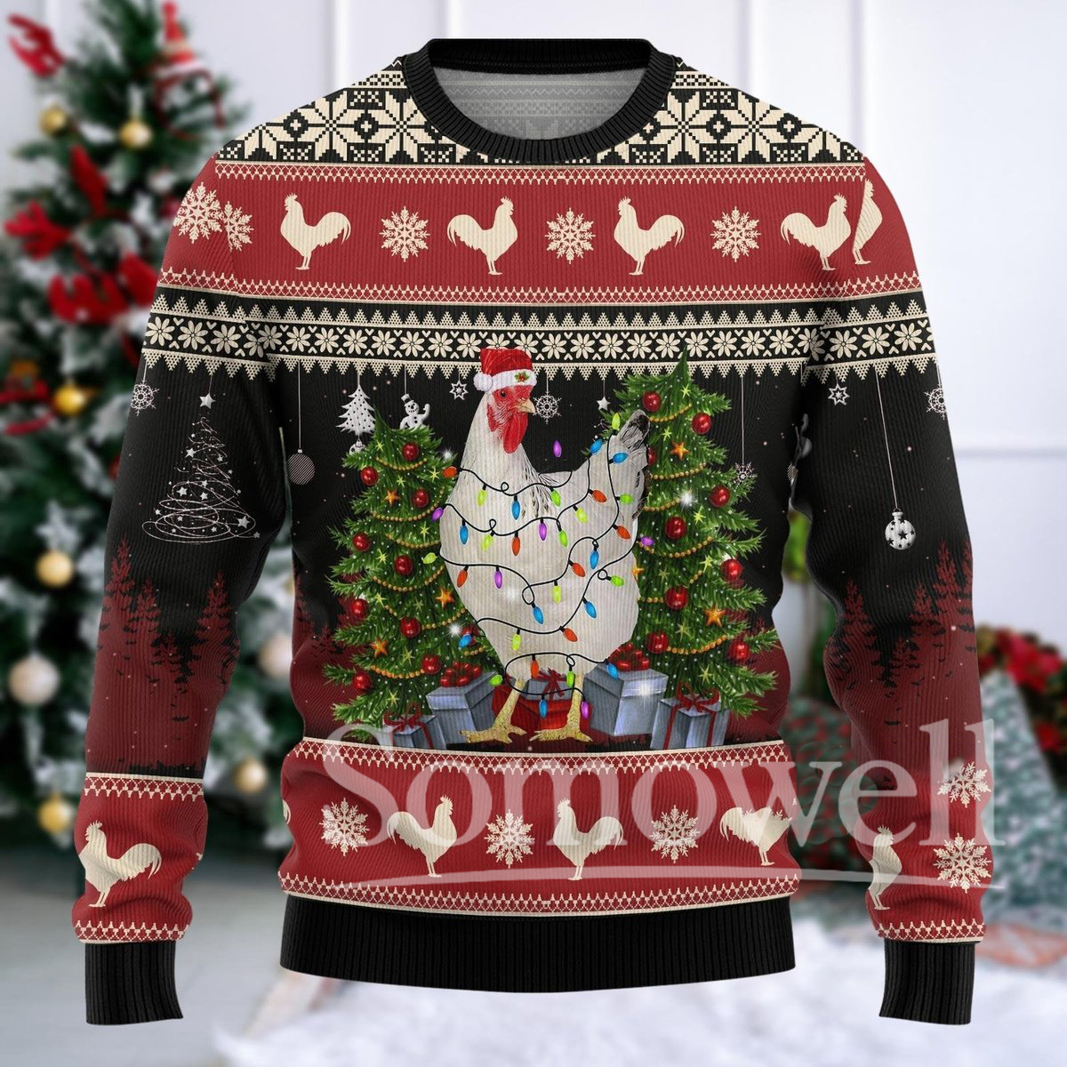 Chicken Ugly Christmas Sweater Funny Farm Hen Holiday Knit Pullover for Animal Lovers