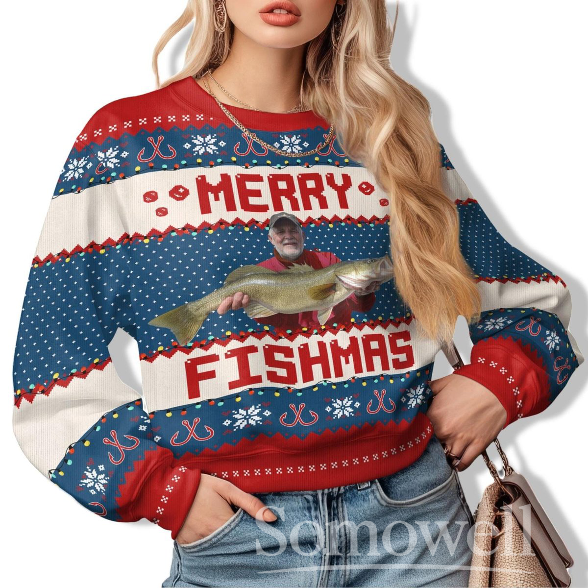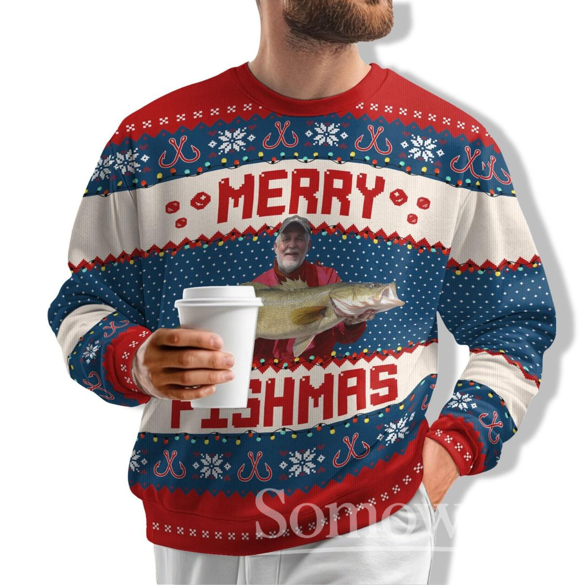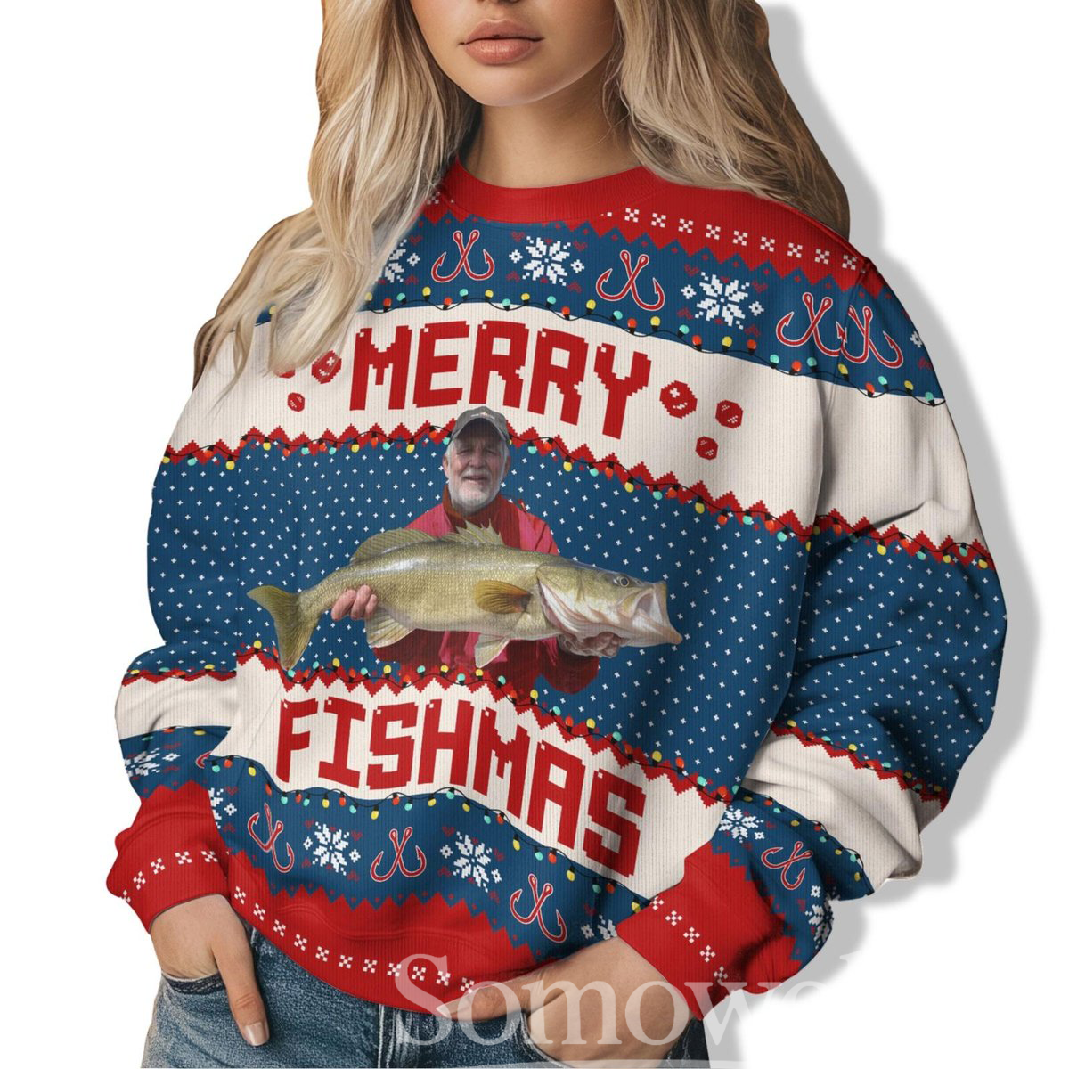 Fishing Ugly Christmas Sweater Merry Fishmas Funny Fisherman Holiday Knit Pullover Gift