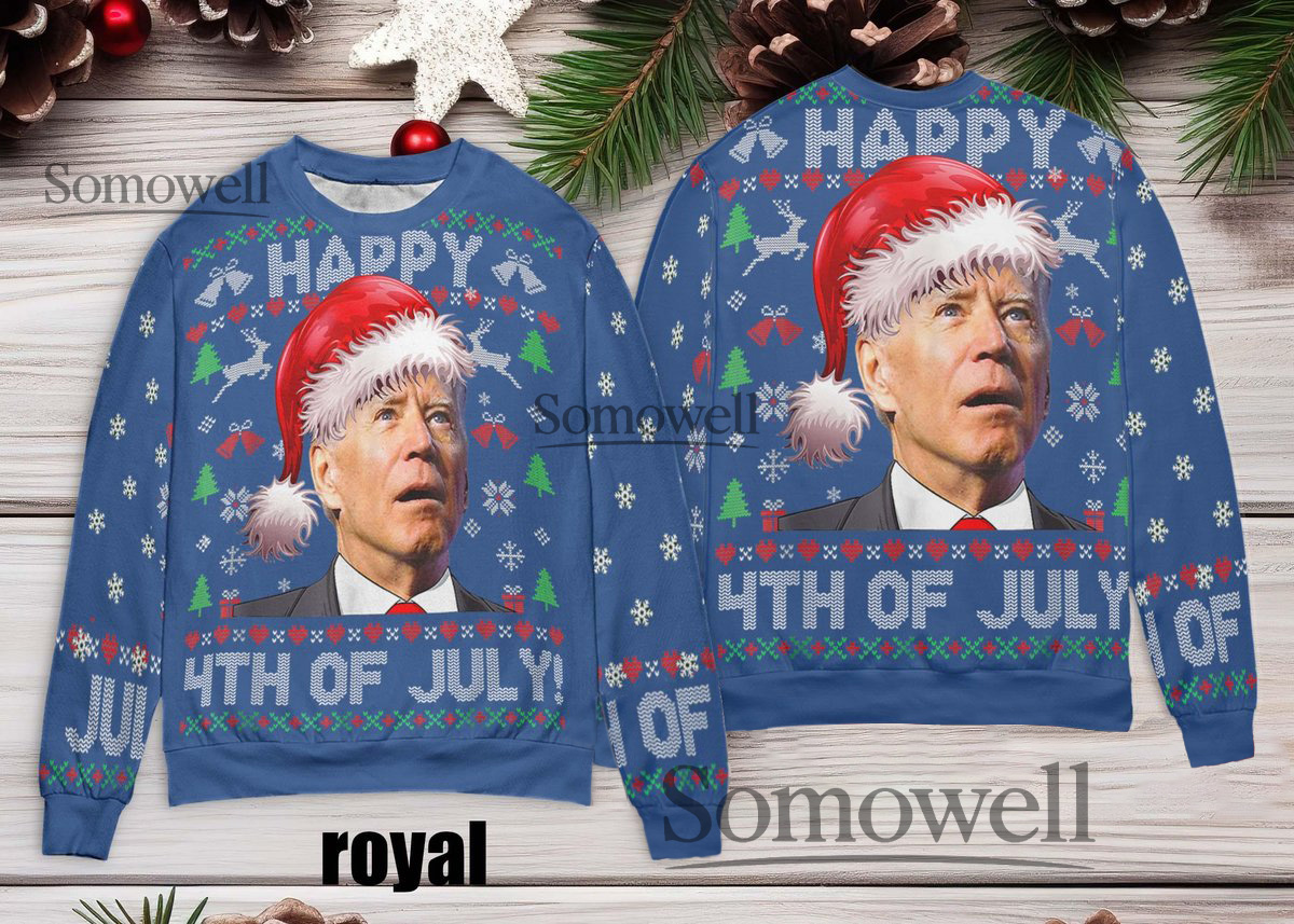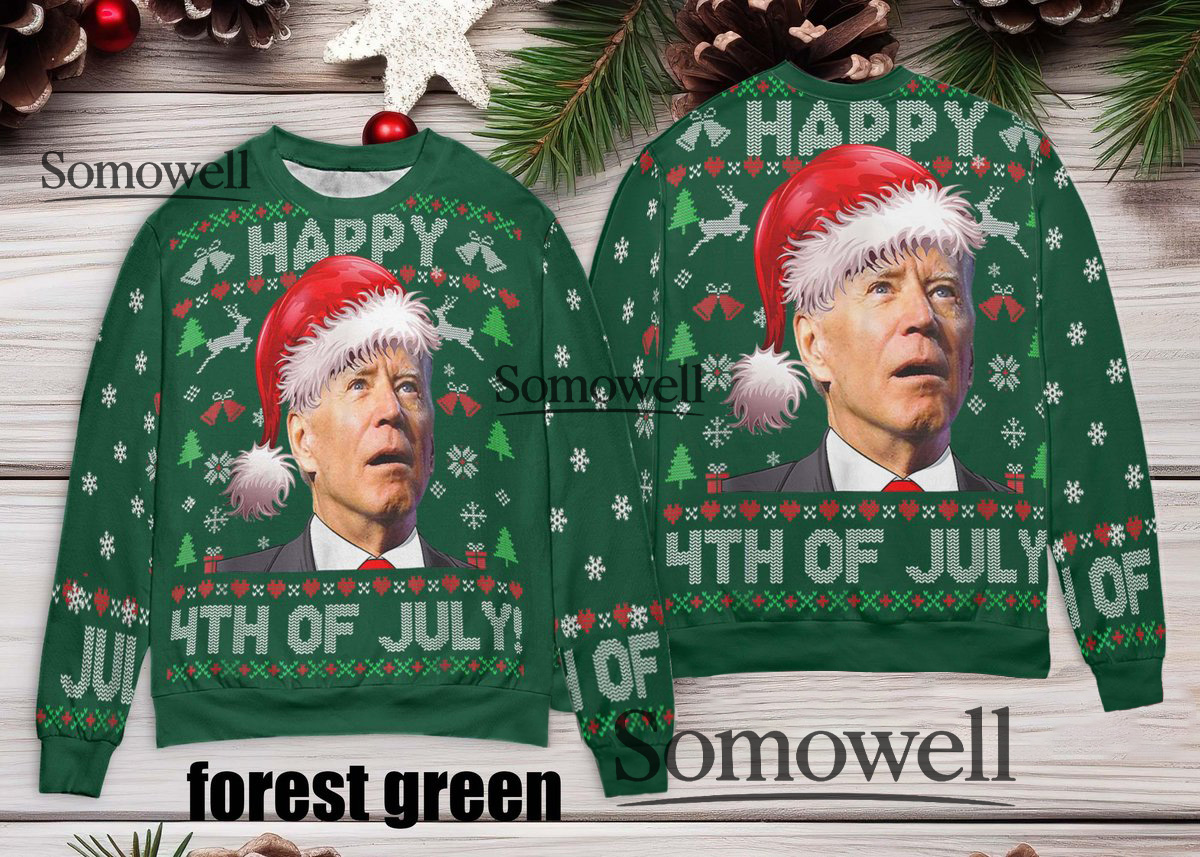 Funny Happy 4th Of July Santa Hat Ugly Christmas Sweater Black Red Humor Edition Multi Color Edition