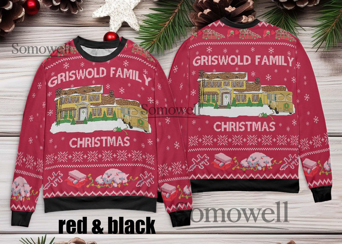 Griswold Family Christmas Vacation House Ugly Christmas Sweater Black Red Classic Movie Edition Multi Color Edition