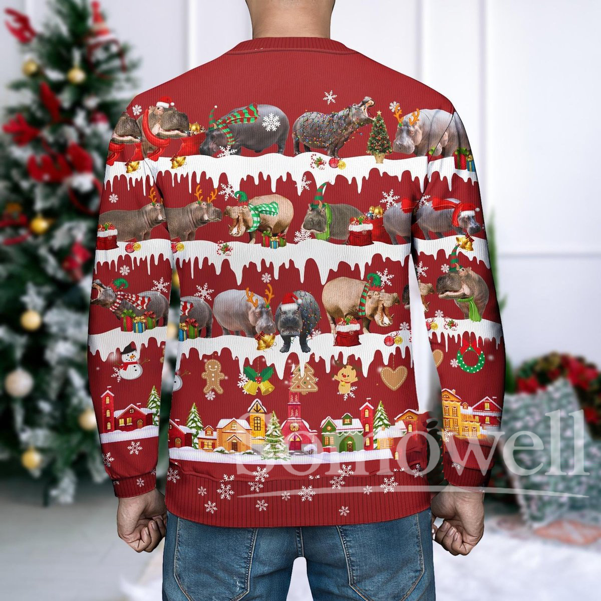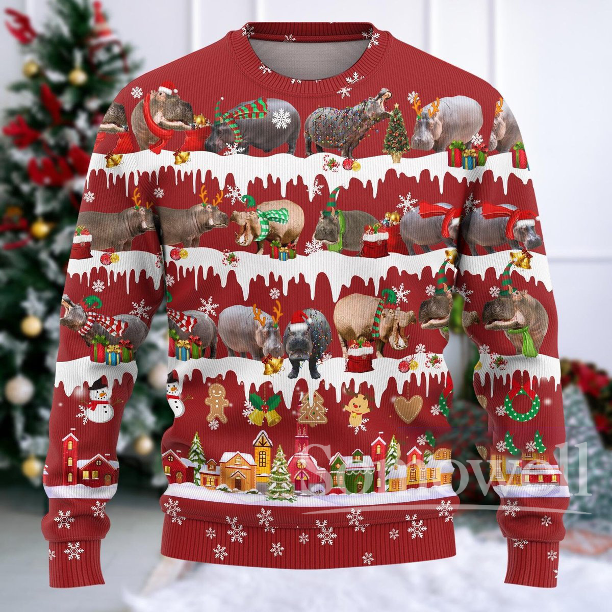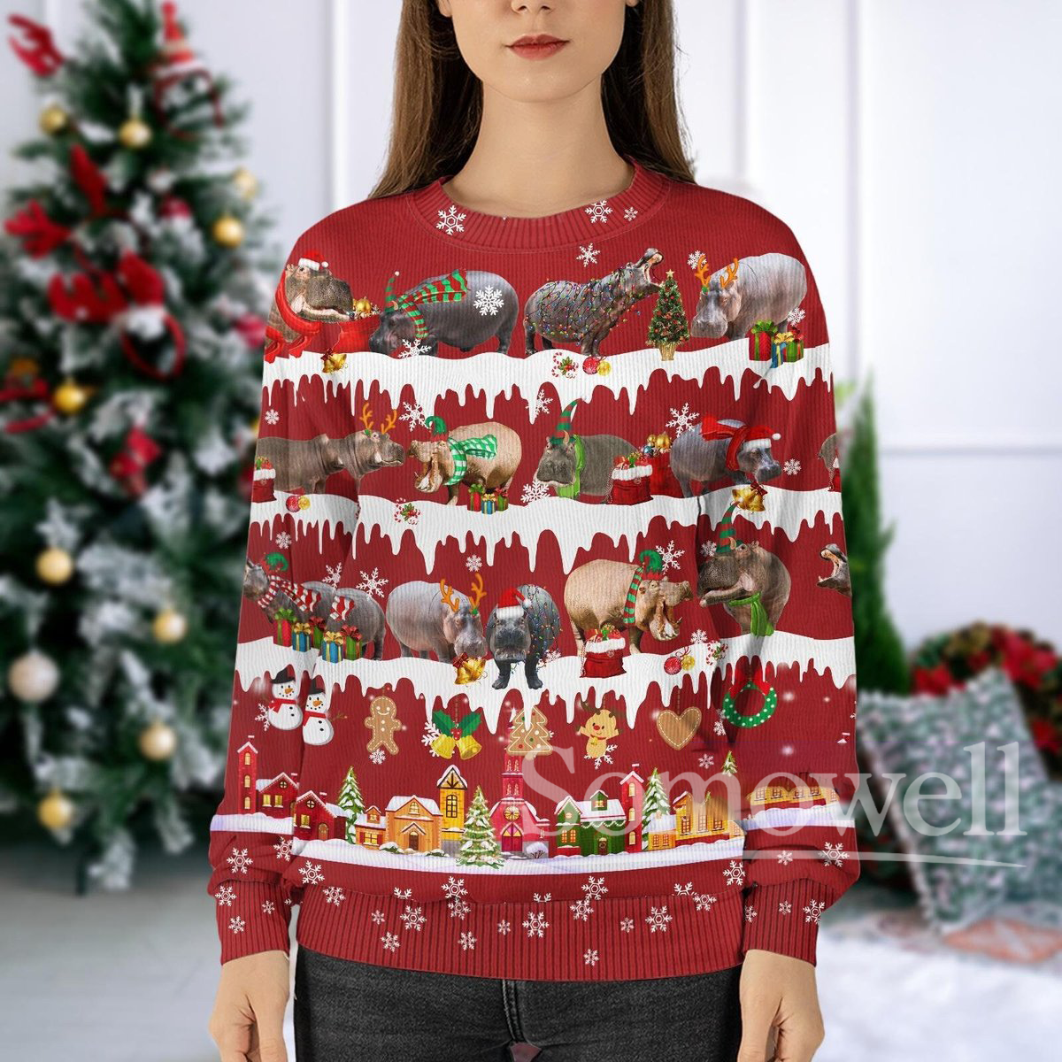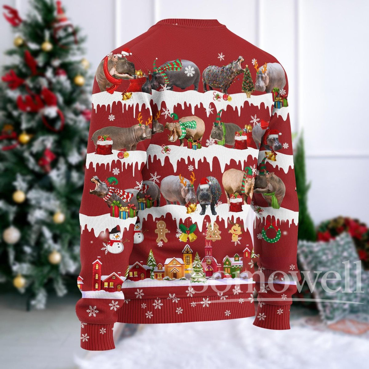 Hippo Christmas Sweater Funny Animal Ugly Holiday Knit Pullover Gift for Wildlife Lovers