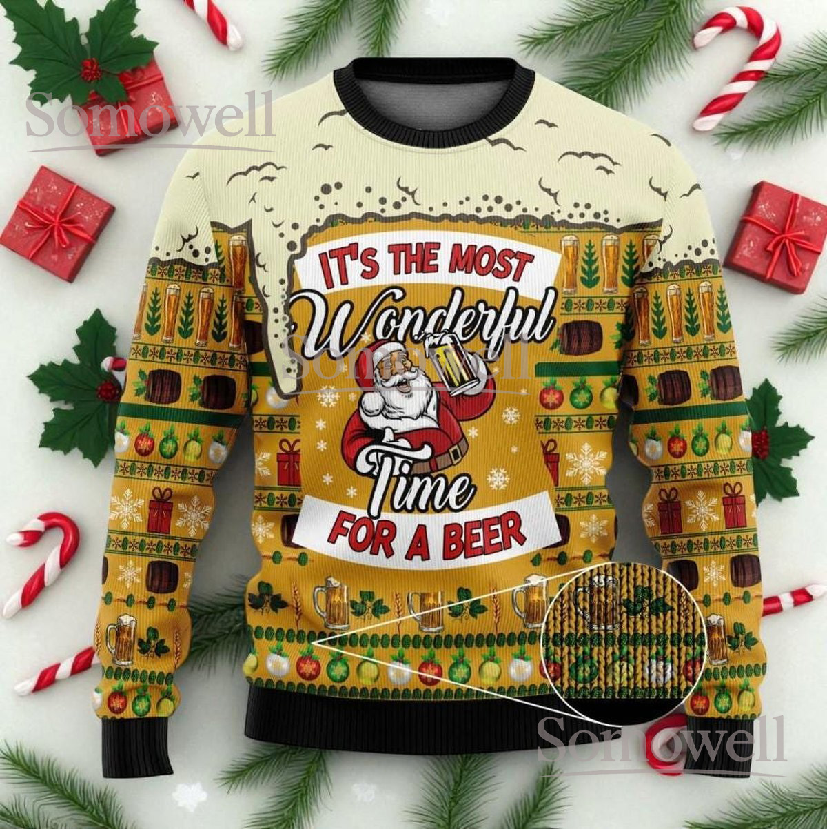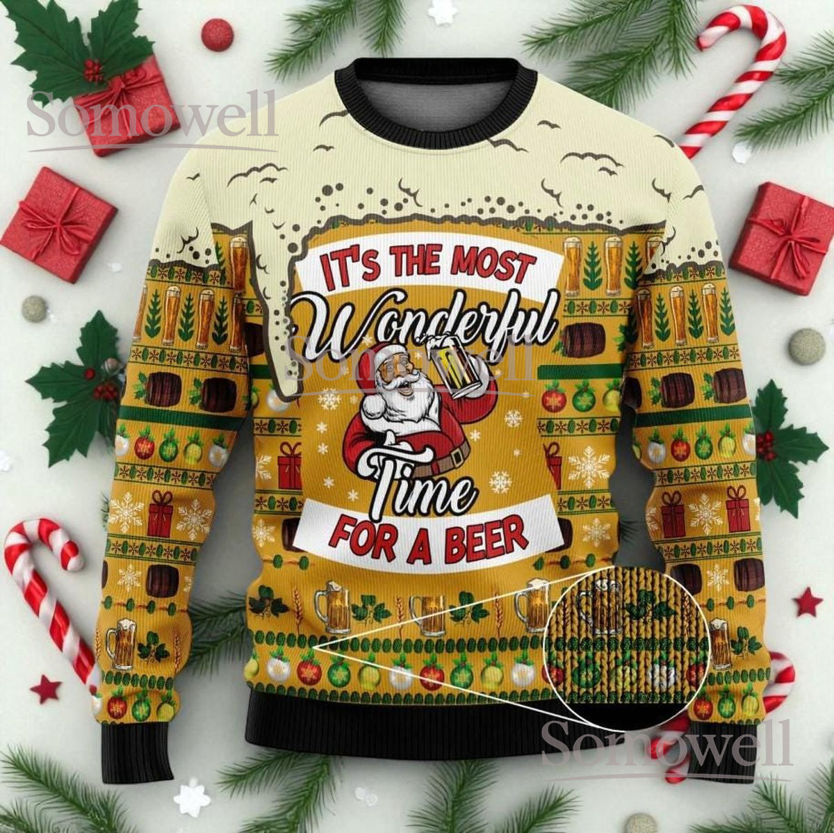 Santa Wonderful Time For A Beer Funny Ugly Christmas Sweater Gift Idea