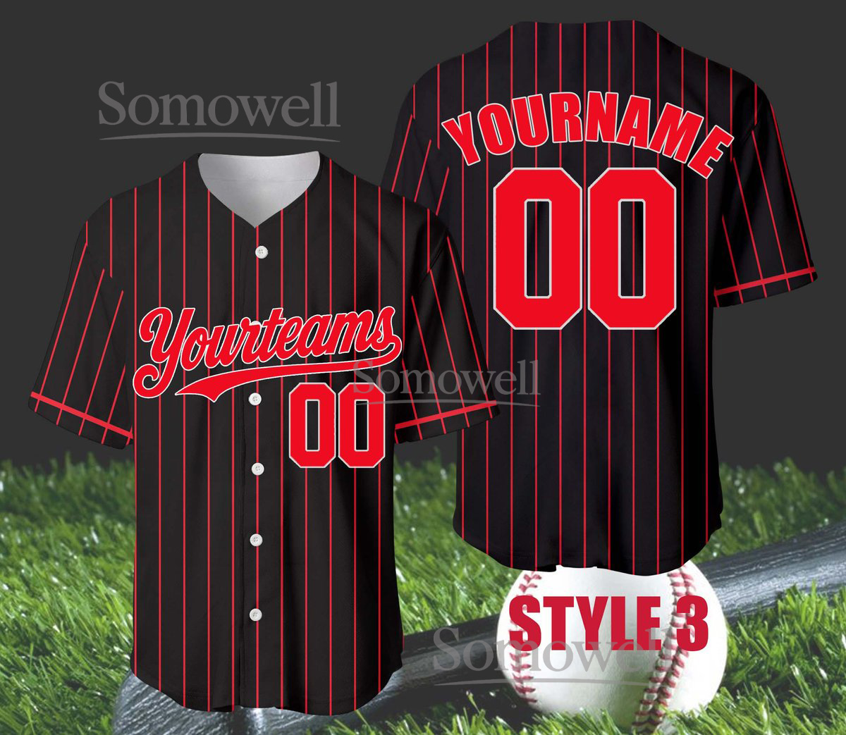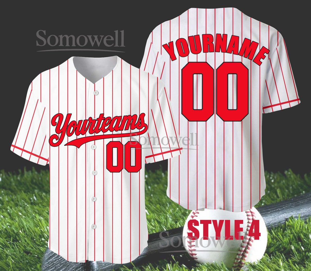 Classic Red Pinstripe Baseball Jersey Custom Team Name Number Vintage Sports Shirt