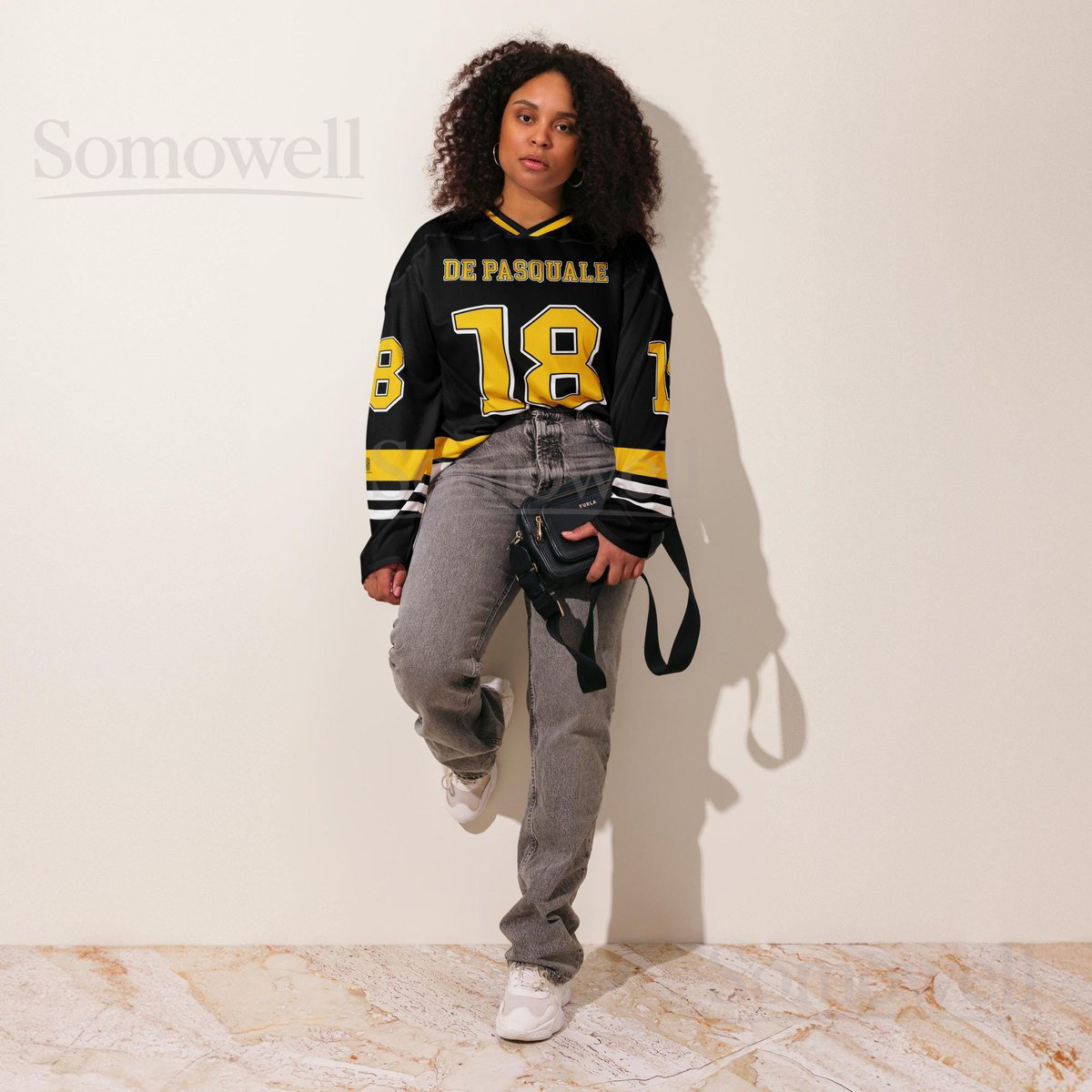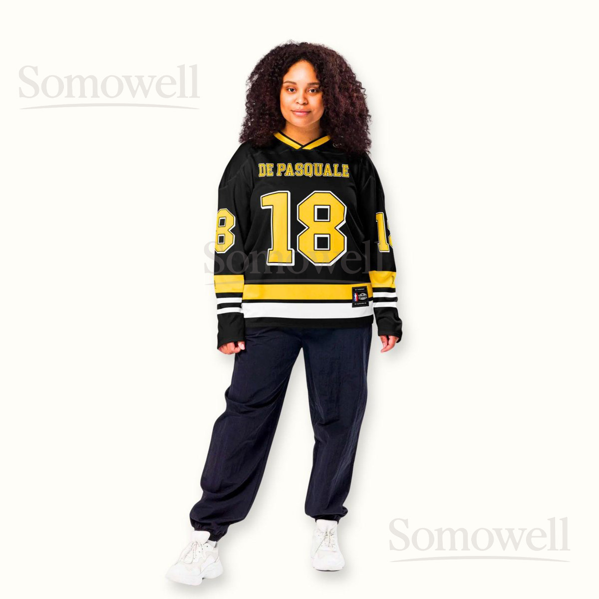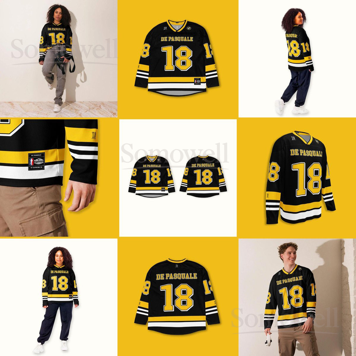 Custom Anton De Pasquale Team 18 Supercars Hockey Jersey Shirt for Motorsport Fans Black and Yellow Recycled Polyester Racing Apparel