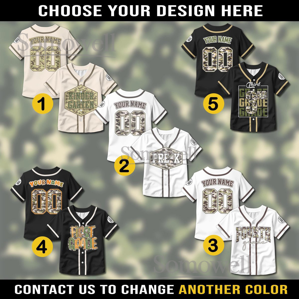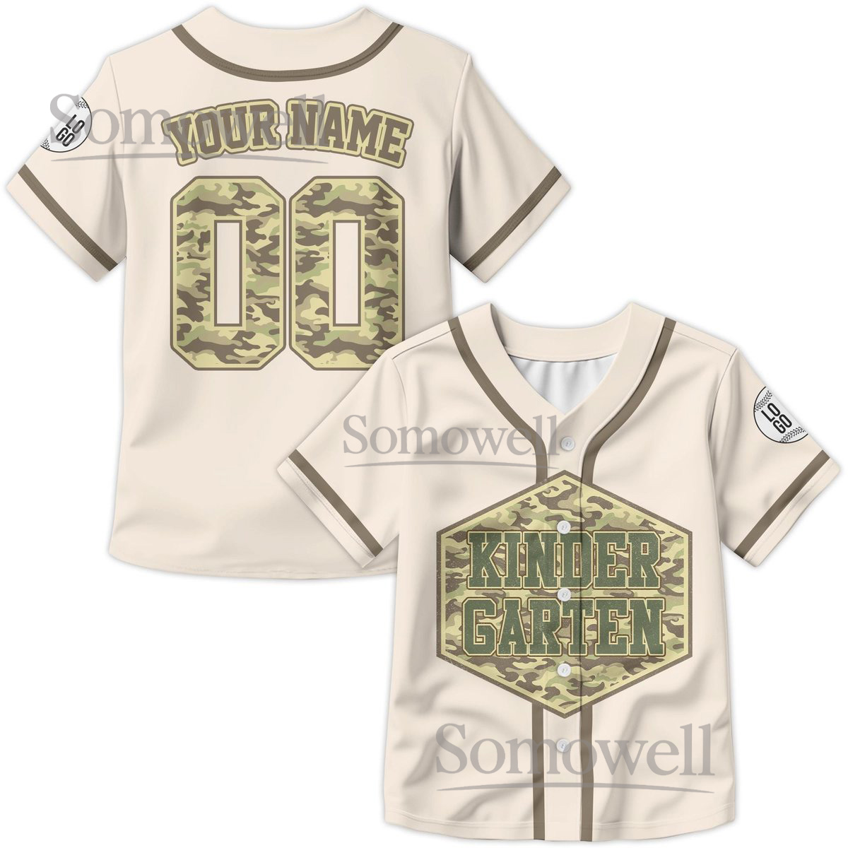 Custom Camouflage Kindergarten Baseball Jersey for Boys and Girls Personalized Name and Number Back to School Apparel