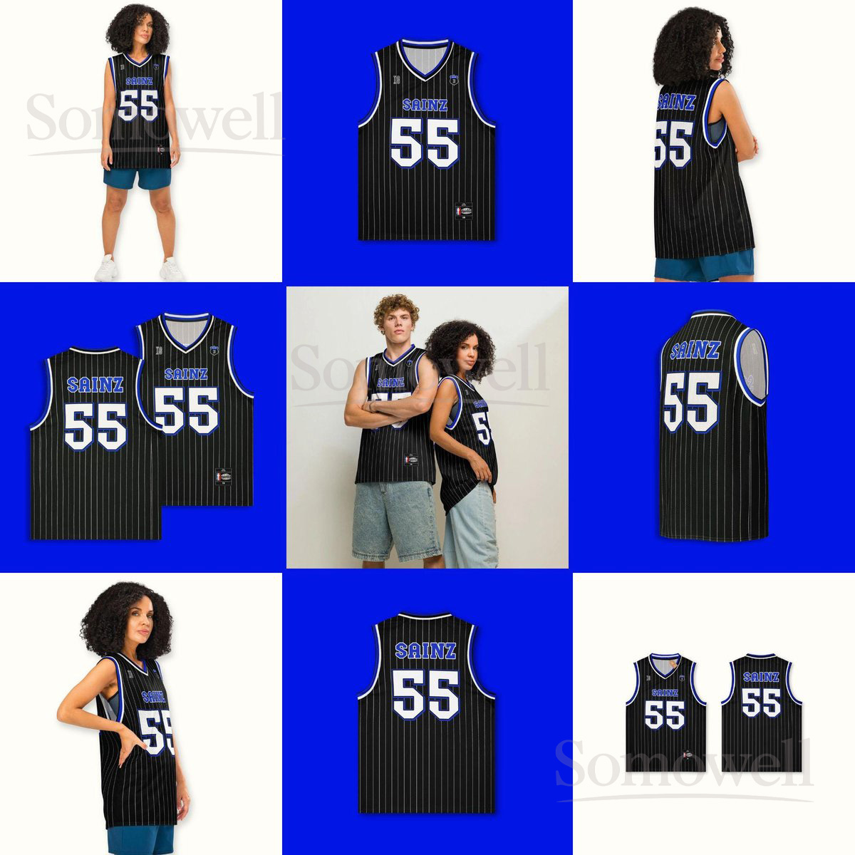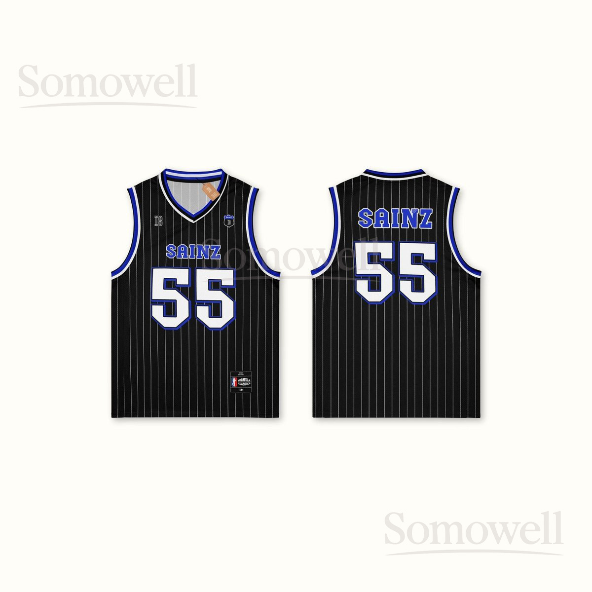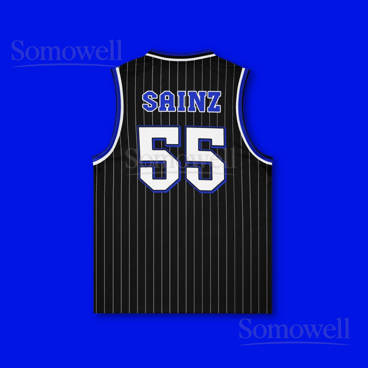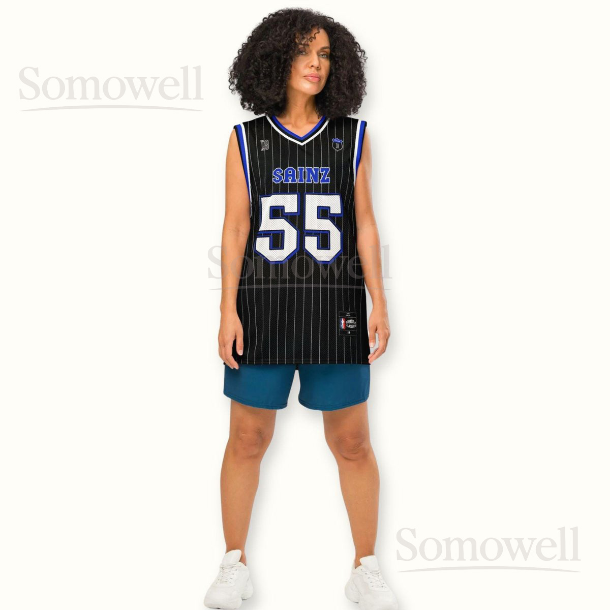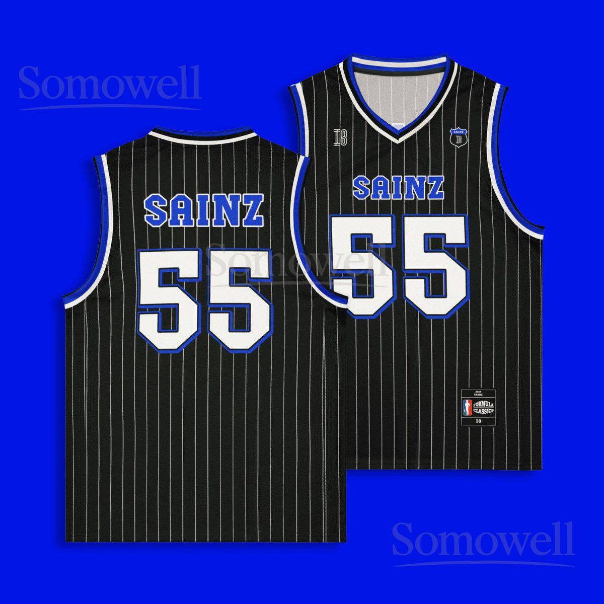 Custom Carlos Sainz Williams F1 Basketball Jersey Shirt for Formula 1 Fans Black and Blue Pinstripe Team Apparel
