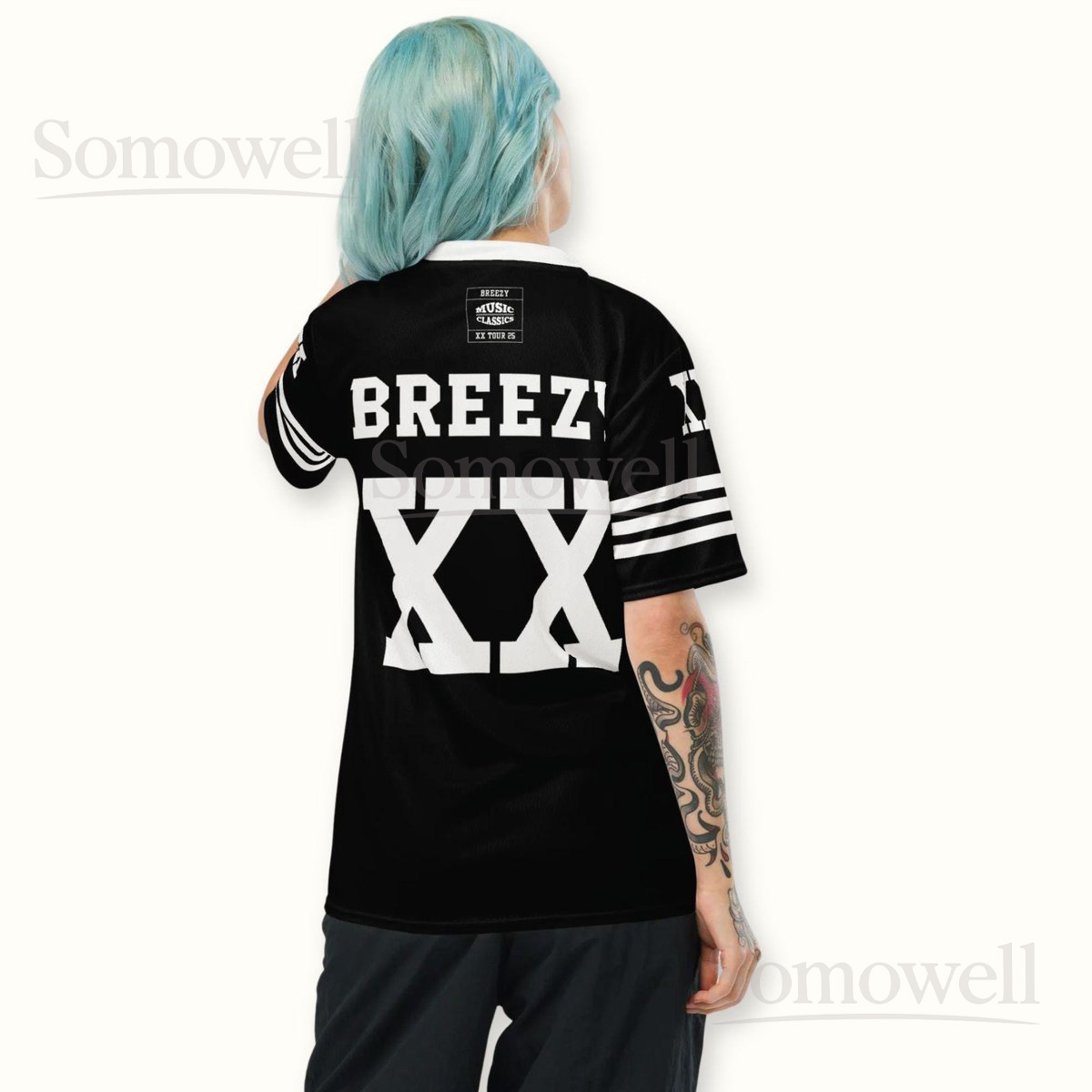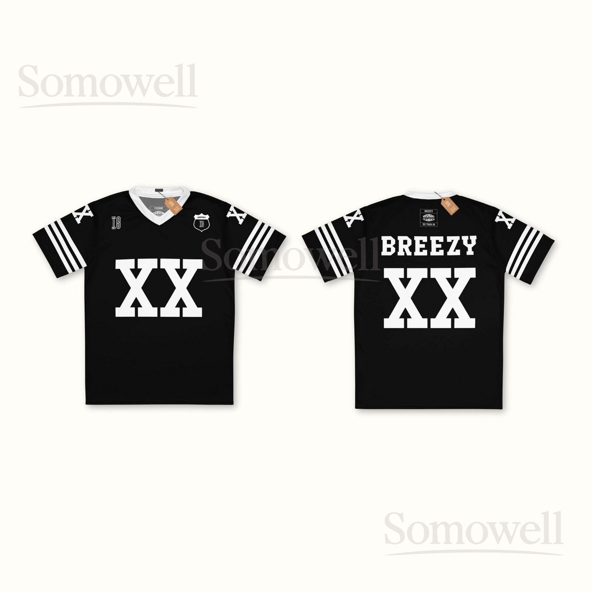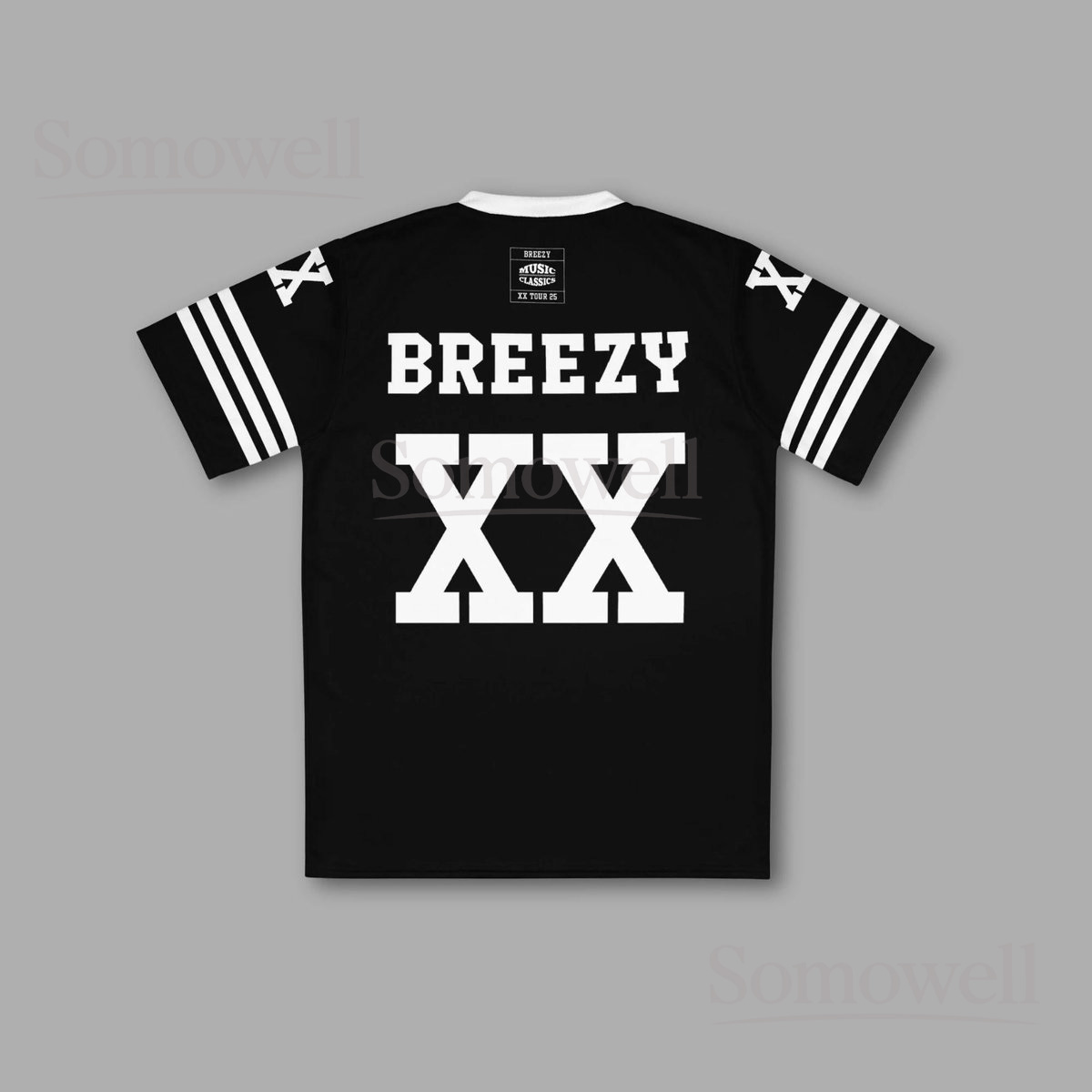 Custom Chris Brown Breezy Bowl Football Jersey Shirt for Music Fans Black and White XX Tour Concert Streetwear Outfit